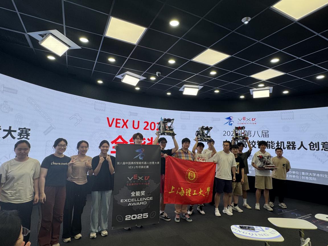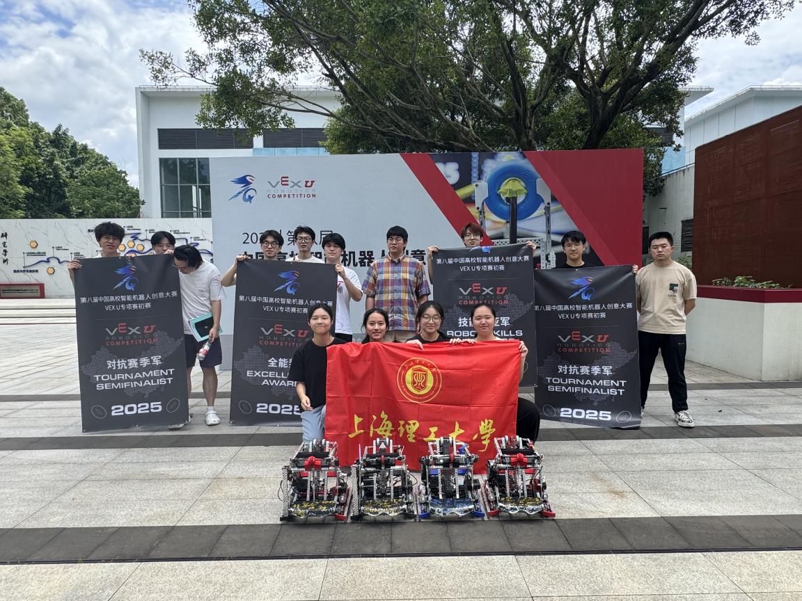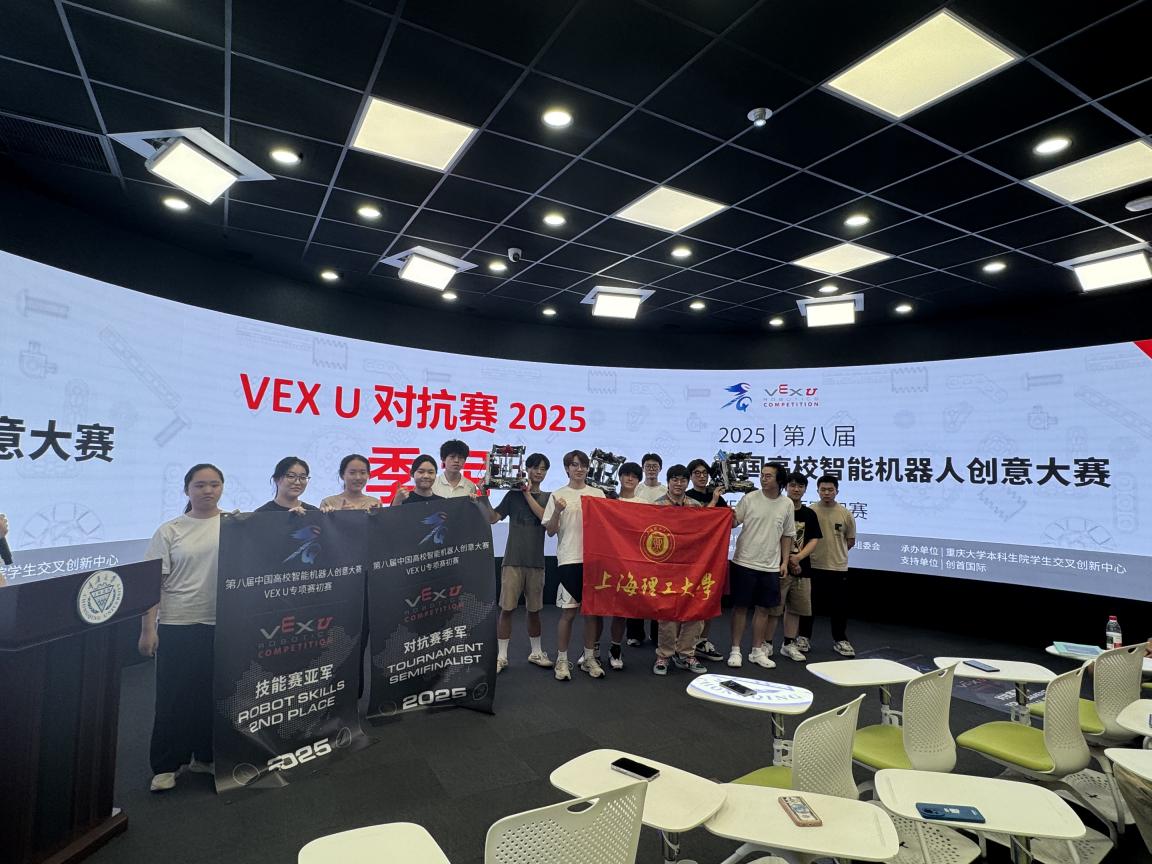 在学校和各学院的大力支持下,在创新创业学院(公共实验中心)及工程实训中心的不断努力下,我校参赛队伍得以利用专业实验设备,获得教师的悉心指导并借助各跨学科协作平台的力量,同时全体参赛队员充分发挥主观能动性,以高度的责任感、使命感和抓住机会的能力,独立完成了多台参赛机器人的设计研发、制作组装及调试优化等全流程工作,使学生的知识学习和技术创新迅速转化为实际成果,并凭借过硬的专业素养和突出的创新成果,在激烈角逐中脱颖而出,再创佳绩,展现了上理工新时代青年学子的卓越风采和过硬本领。我校VEX赛队在2025赛季技能赛项最好成绩是全球第三名,目前居全球第四名,中国第一名,全球大赛优异成绩的取得体现了我校工程创新人才培养和“以赛促教、以赛促学、以赛促创”的卓越成效。