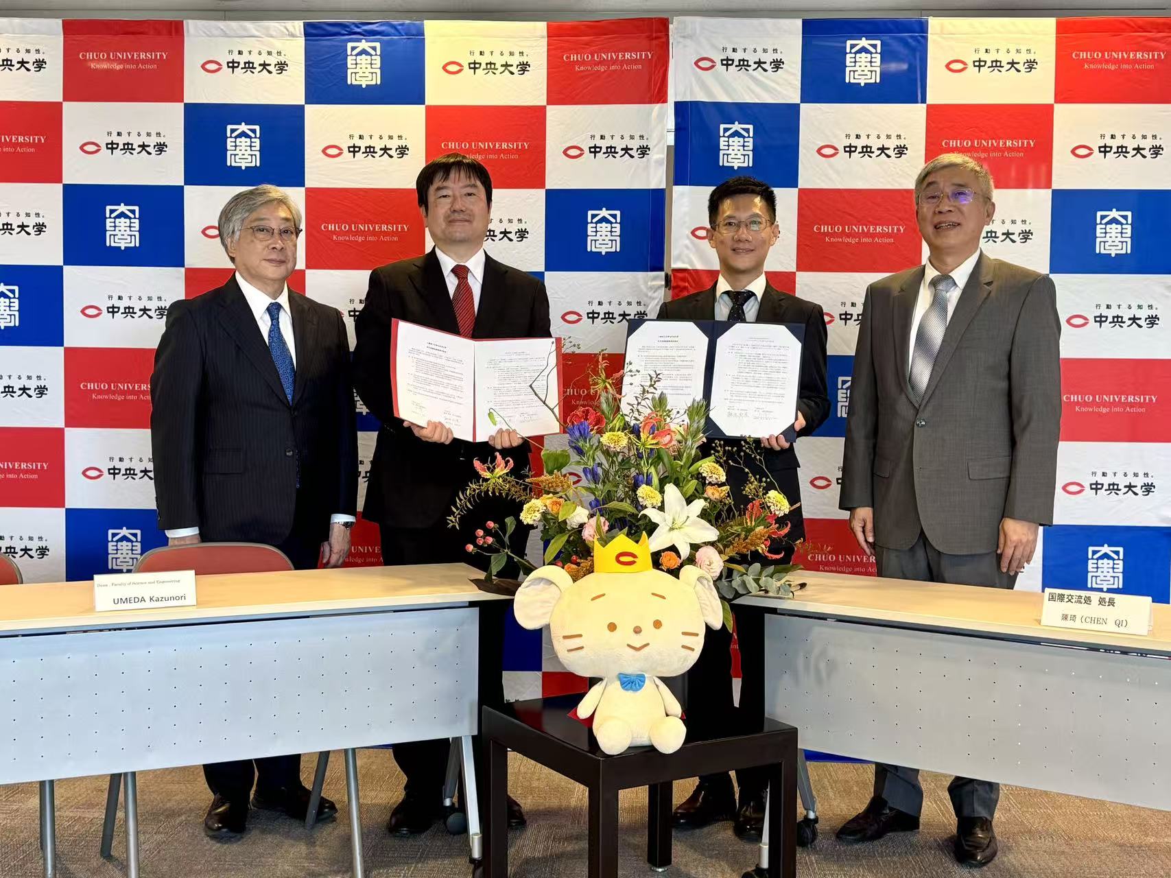 10月14日下午,代表团到访中央大学多摩校区。中央大学校长河合久、副校长兼国际交流中心所长国松麻季、理工学院院长梅田和升、国际交流中心副所长栗原文子等接待来访。双方围绕两校合作进行了深入交流。王凌宇指出,上海理工大学致力于建设引领行业产业发展的一流理工科大学,希望两校在学术研究、教师访学、学生交流、平台共建、附属中学交流等领域开展实质性合作。中央大学校长河合久表示,2025年是中央大学创办140周年,2026年上海理工大学将迎来120周年校庆,希望两校在此前合作的基础上,不断扩大合作范围,推动上海理工大学与中央大学商学院、国际经营学院的交流合作,共同提升两校的国际化办学水平。随后,两校签署了全球学习项目合作协议。