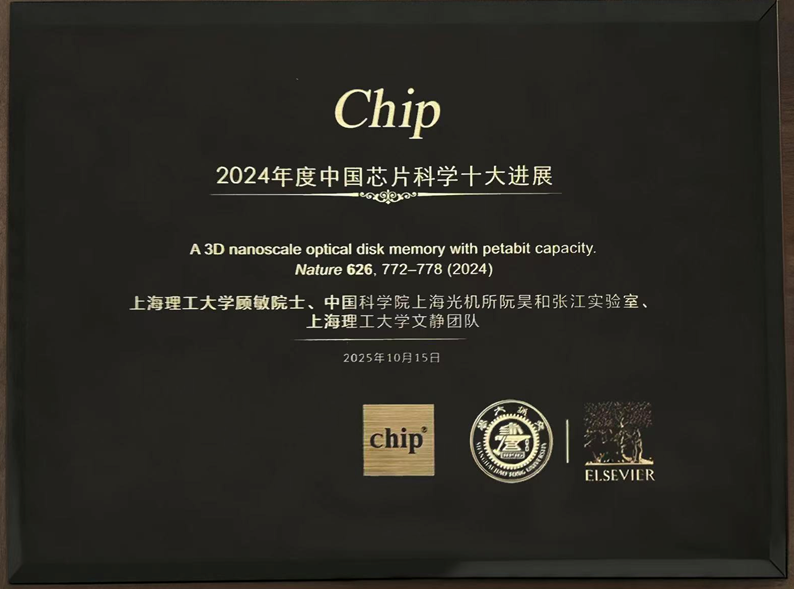 近日,第三届芯片大会暨Chip 2024中国芯片科学十大进展颁奖典礼于深圳举行。上海理工大学顾敏院士在会上做了题为”片上光学人工智能:计算和存储”(On-chip optical artificial intelligence: computation and memory)的大会报告。会议期间,Chip期刊正式发布了“Chip 2024中国芯片科学十大进展”及“提名奖”名单。由顾敏院士团队牵头研发的“Pb级超分辨三维纳米光子存储器技术”成功入选“Chip 2024中国芯片科学十大进展”。