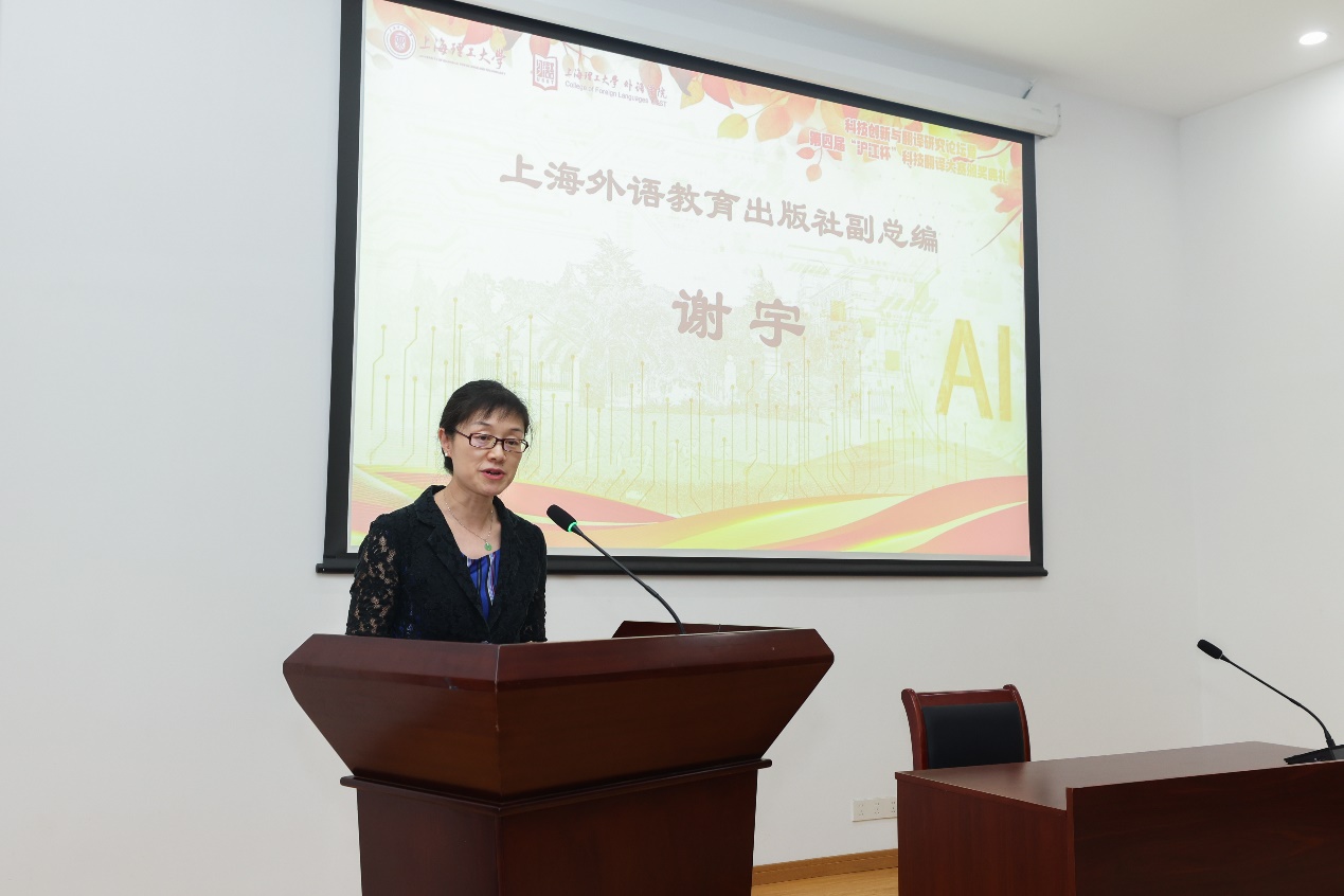 上海外语教育出版社副总编谢宇在致辞中强调出版社将积极整合多方资源,深化产学研协同创新,全方位助力科技翻译事业的高质量可持续发展。