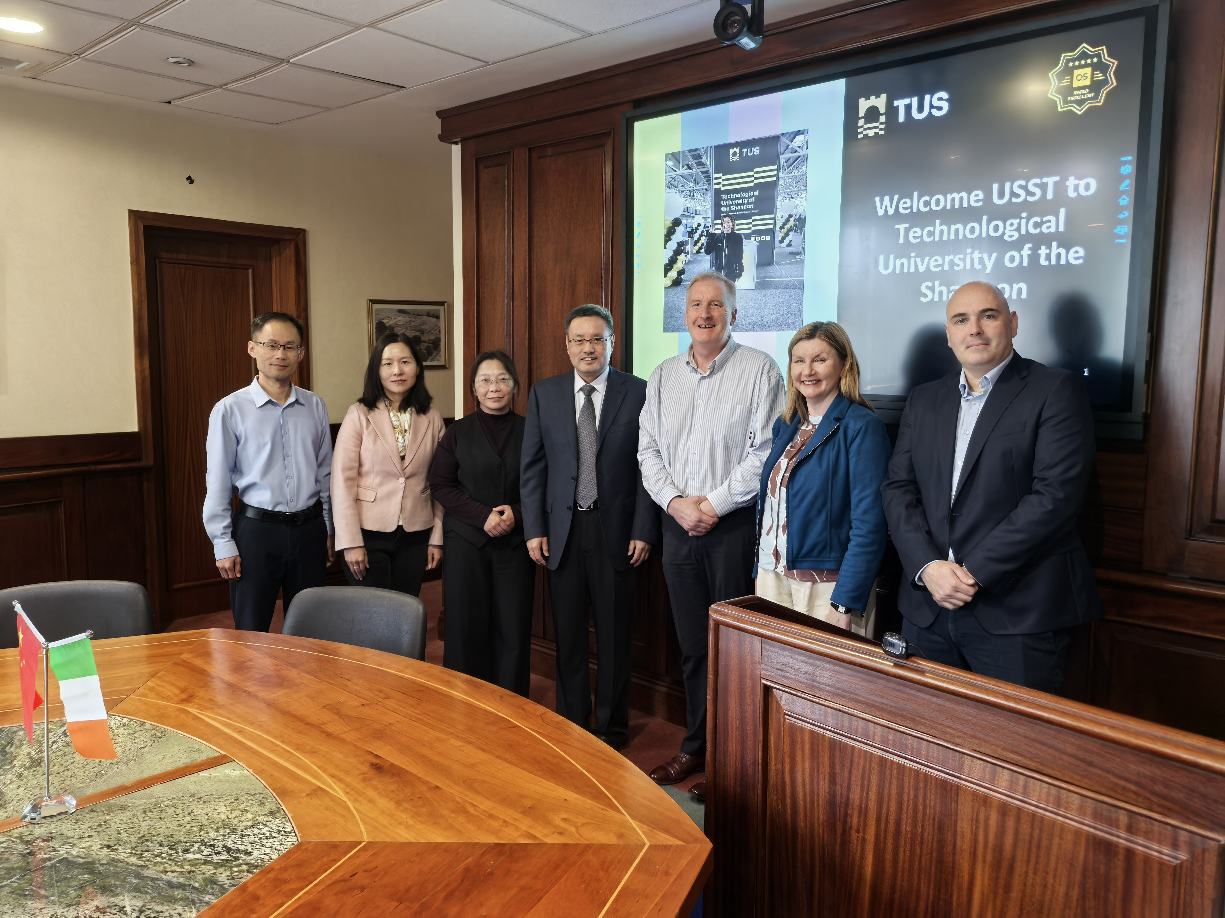 随后,代表团访问了位于阿斯隆的爱尔兰香农理工大学主校区,副校长多纳查•麦克纳马拉(Donnacha McNamara),国际部主任玛丽•辛普森(Mary Simpson)以及商学院院长和工程技术学院院长等相关负责人接待来访。双方签署合作备忘录,并就开展“1+1”硕士联合培养项目、暑期学校、学术交流合作展开深入讨论。期间,代表团还参观了工程技术学院机器人实验室,双方就科研合作、人才培养等方面达成了多项共识。