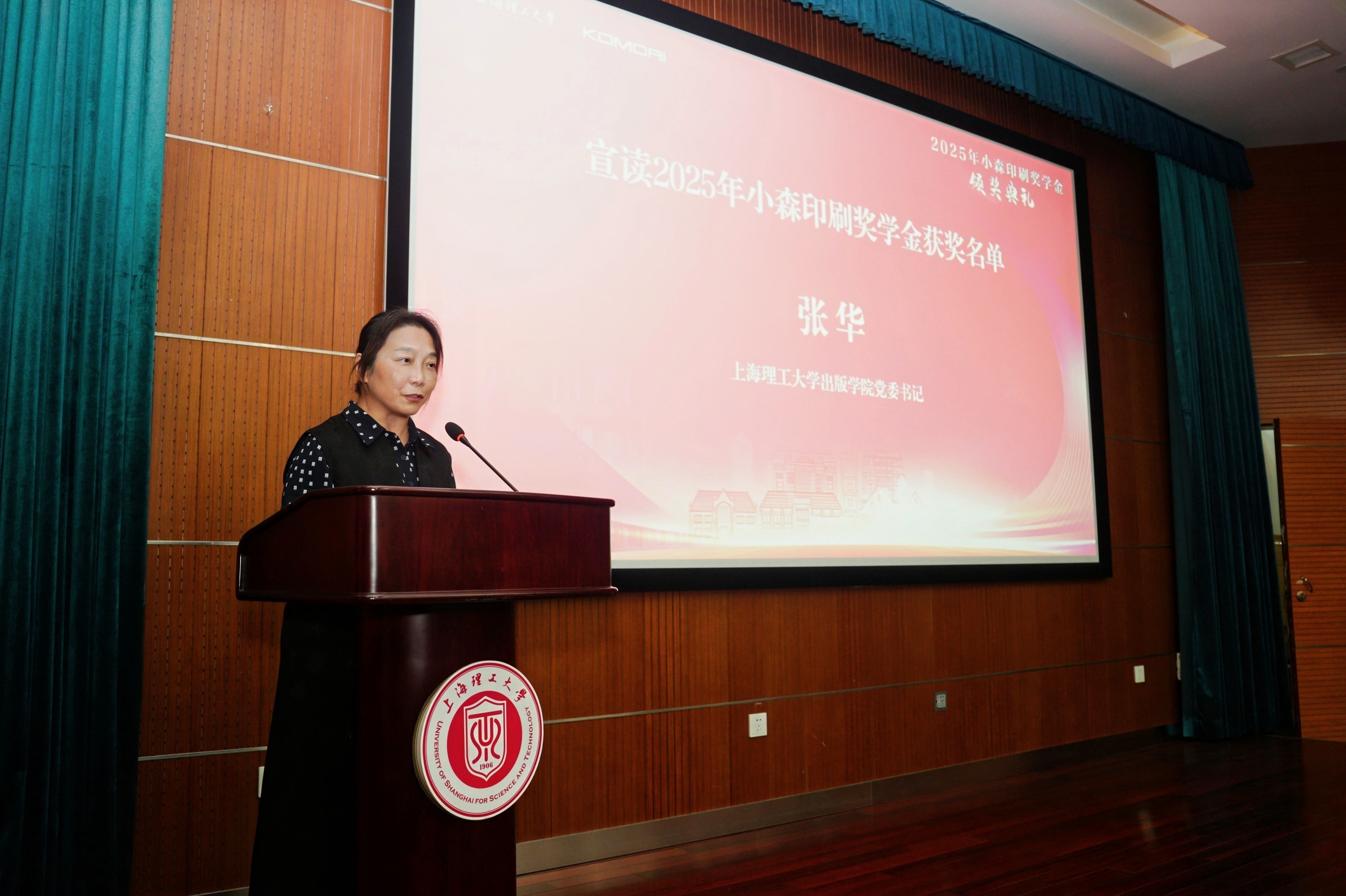 11月6日下午,“小森印刷奖学金”2025年度颁奖典礼在我校举行。日本小森株式会社首席大师印出明浩,海外营业本部营销顾问贺来兴一,小森(深圳)印刷技术有限公司副总裁孙国生、山田光,小林印务有限公司董事长余国强,校友工作联络处处长曲德强,上海出版印刷高等专科学校学生处副处长汤泉,出版学院党委书记张华出席本次活动。颁奖典礼由出版学院党委副书记王蕊主持。