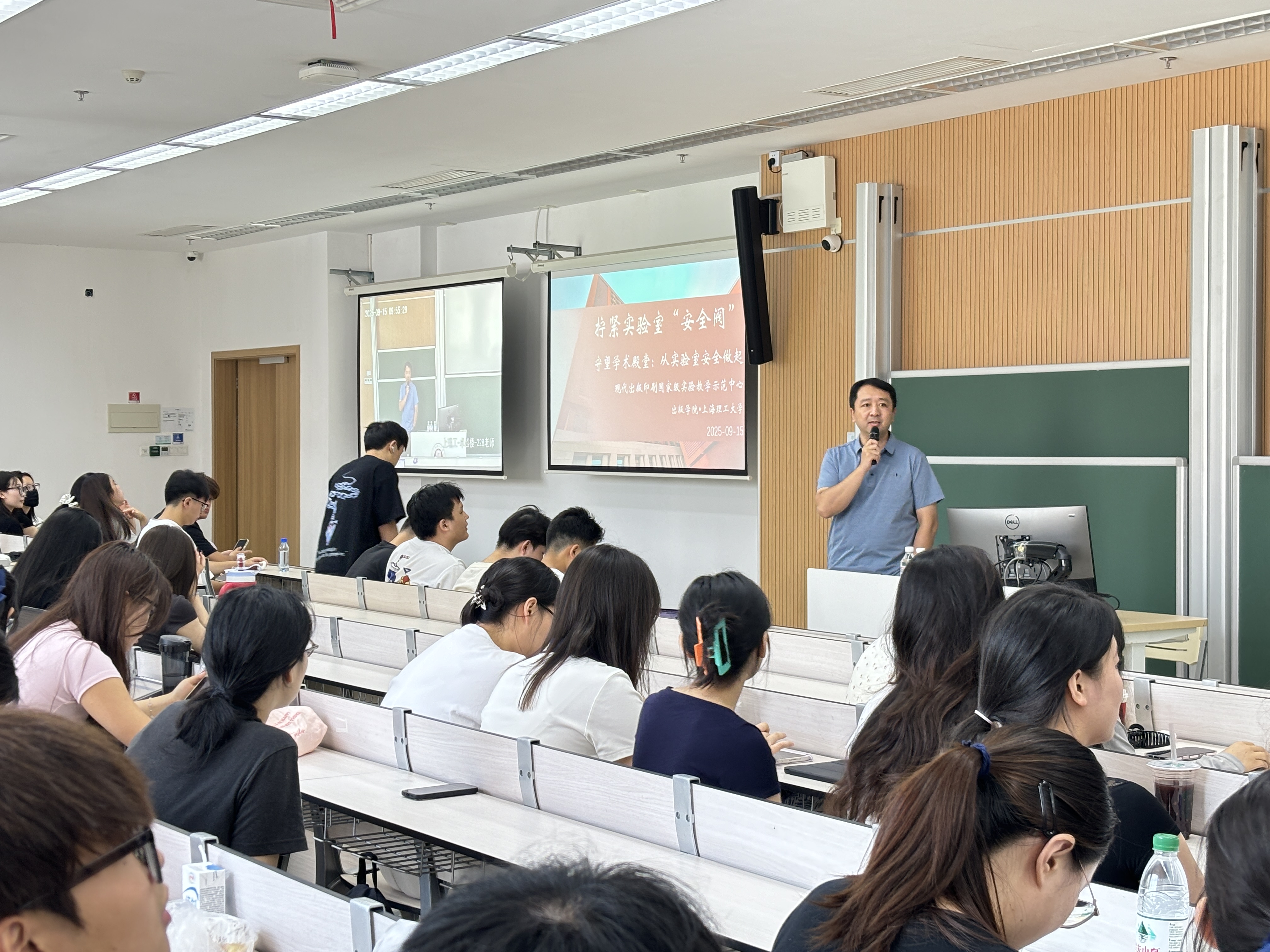 9月15日上午,在卓越楼228教室,谢蜀黍反诈工作室创始人谢晔警官结合近年来高发的校园诈骗案例,从“电信网络诈骗常见类型”“识别诈骗的关键技巧”等维度进行讲解,通过真实案例拆解与互动提问,让同学们深刻认识到反诈防骗的重要性,有效提升了自我防范能力。出版学院实验办主任姜中敏聚焦实验室安全管理,详细解读了学院实验室使用规章制度、实验操作规范及应急处理流程。他结合出版学科实验教学特点,针对实验器材使用、危险品管理、消防安全等关键环节进行重点强调,并通过案例分析,引导同学们树立“安全第一、规范操作”的实验意识,为后续开展科研实践筑牢安全基础。