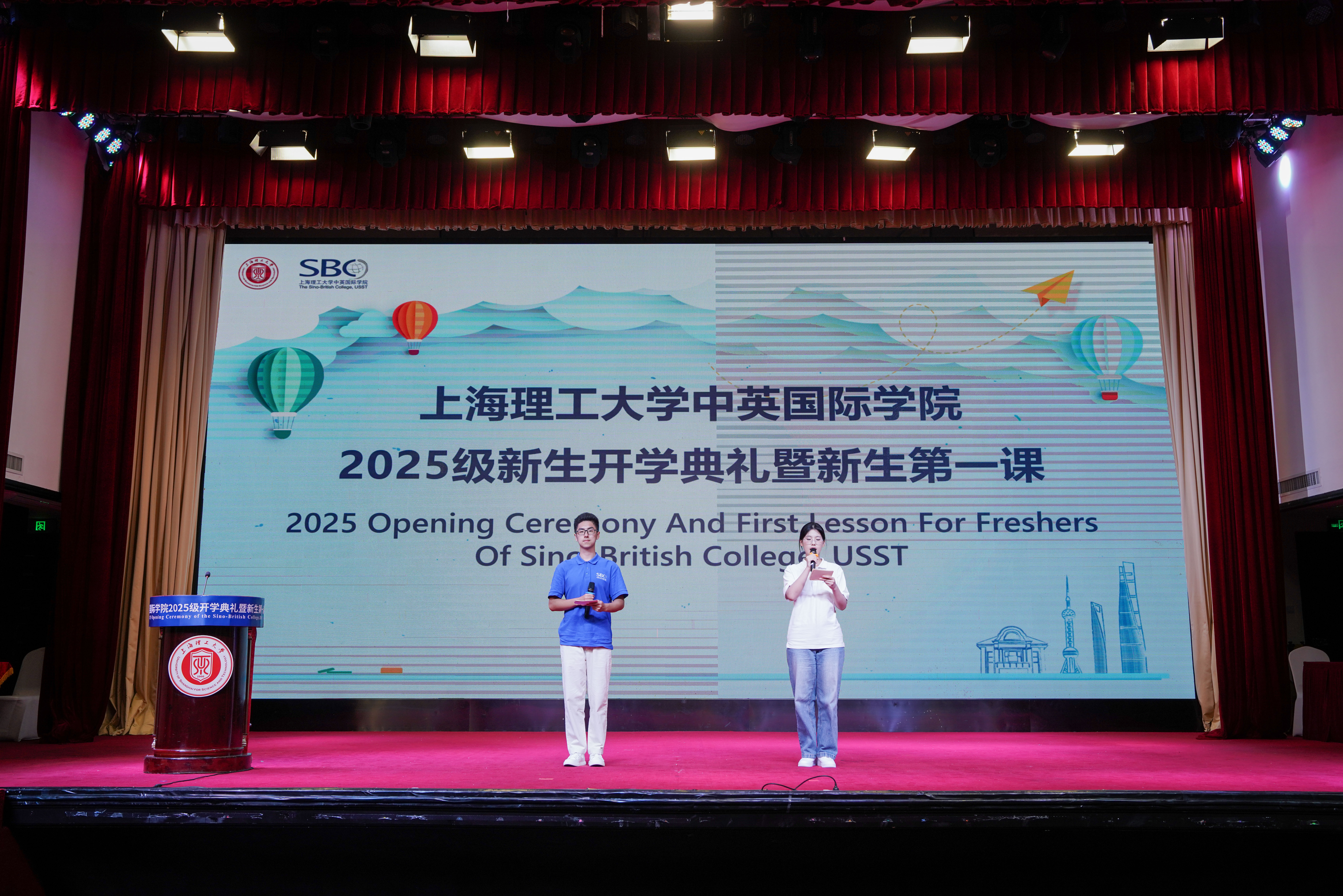 9月19日,中英国际学院2025级新生开学典礼暨新生第一课在军工路校区大礼堂顺利举行。副校长、中英国际学院院长蔡永莲,学院党委书记李妍,党委副书记、副院长(主持行政工作)、代理执行院长张峥,党委副书记、副院长蔡卉,以及来自学院各个部门的教师代表与2025级500余名新生共同参加了本次活动。