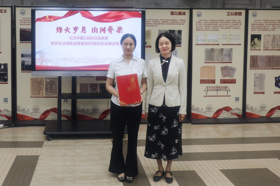 开幕式上,蔡永莲、彭绍钧、杨阳分别为荣获“金牌服务奖”“金牌讲解员”“优秀讲解员”的讲解员颁奖,肯定了他们在红色文化传播中的贡献,同时激励更多师生参与文博场馆讲解工作。杨浦区委党史研究室(区方志办)主任黄伟一向各高校代表赠书,为高校抗战历史研究与党史学习教育提供资料支持。杨浦区档案局(馆)长史英俊向上海理工大学赠送珍贵档案史料复制件,为学校丰富校史资源增添了重要素材。