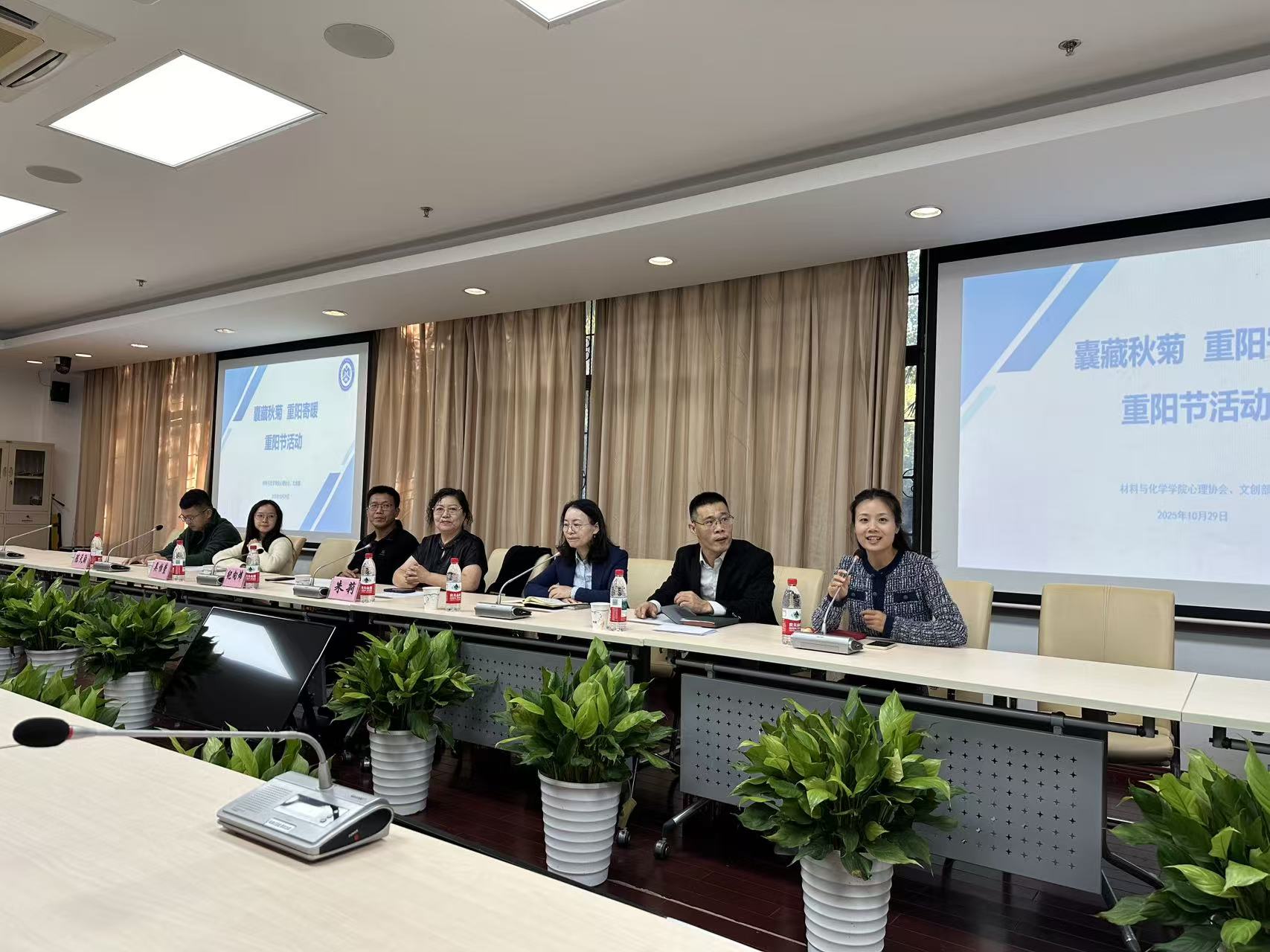 在重阳节来临之际,材料与化学学院心理协会联合学生会文创部于2025年10月29日在格致堂108室成功举办 “囊藏秋菊,重阳寄暖” 重阳节主题活动,校、院关工委领导、老教师及青年教师代表和学生齐聚一堂,共赴传统文化与温情之约。