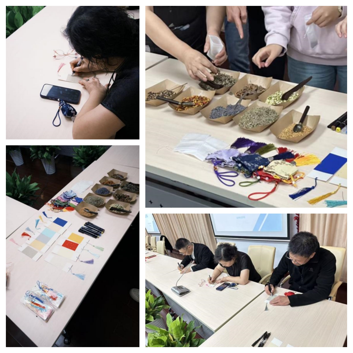 香囊手作环节中,师生们搭配艾草、薰衣草等香料,绣制专属香囊,体验手工乐趣;同步开展的祝福书写环节,大家以笔墨寄情,将安康祈愿藏入香囊;交换环节更是温情涌动,师生互赠手作,让温暖双向传递。