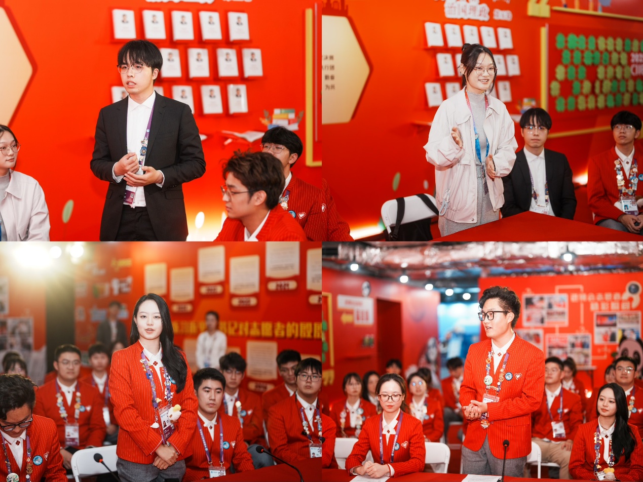随后,校领导来到志愿者之家,与志愿者们亲切交流。刘德强以“科创报国与开放共赢:在进博舞台书写青年答卷”为主题,为志愿者们讲授了一堂生动的微党课。多位“小叶子”代表踊跃发言,分享了参与进博服务的初心、收获与感悟。他们纷纷表示,这段“累并快乐着”的服务经历将成为大学生涯中难忘的珍贵记忆。刘德强认真倾听同学们的发言,细致询问大家的工作安排与后勤保障情况,并对志愿者展现出的责任与担当表示赞许。
