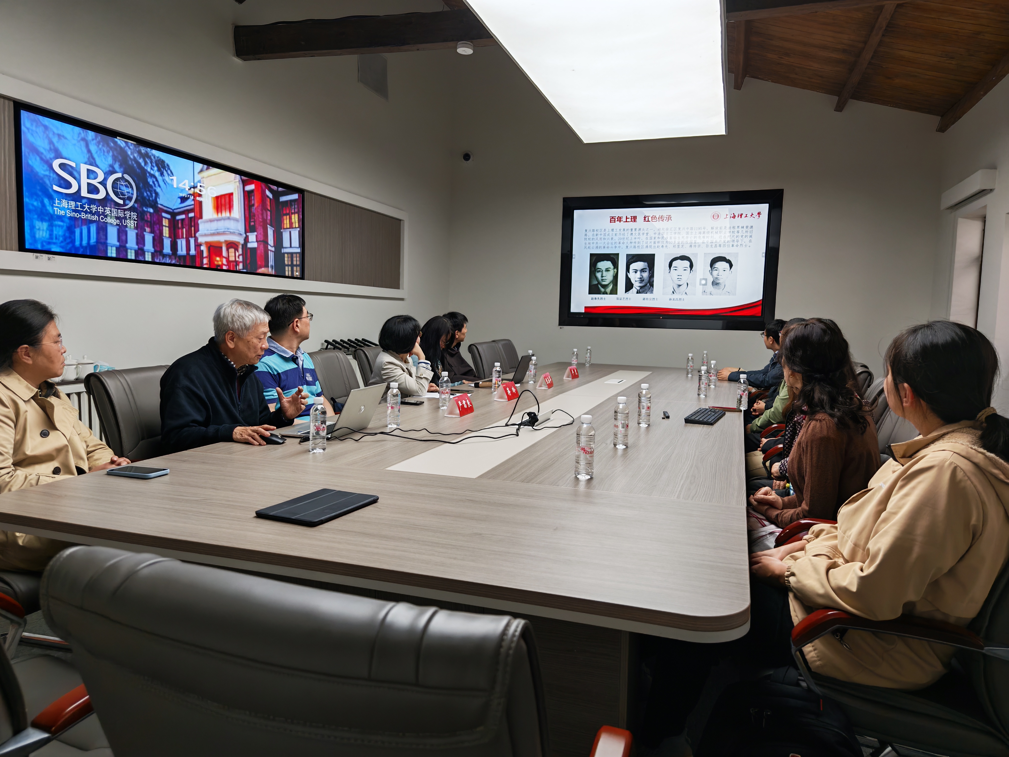 支部党员在中共复兴路退休第二党支部李道康的带领下,参观了上海理工大学复兴路校区校史馆。李道康生动详实地介绍了赵寿先和郑显芝两位革命先烈的英雄事迹,他们坚定的理想信仰与无畏的牺牲精神,深深触动了在场的每一位党员,同时大家也对学校的发展历程与红色文化积淀有了进一步的了解。学校退休农工党党员姚翰英深情回顾了自己早年在校参与德语学科建设的宝贵经历。