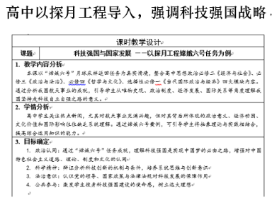 上海理工大学召集各学段骨干教师,共同就科技强国编撰大中小学思政课一体化教案库,明确各学段的立足点,小学阶段以科学家故事导入,激发民族自豪感,初中阶段以大国重器导入,强调科技创新的力量,高中阶段以探月工程导入,强调科技强国战略,大学阶段从科技发展史导入,聚焦挑战和卡脖子问题,落脚时代担当。一体化案例库的建设,有效解决了内容重复或断裂等问题,成为教师们开展一体化教学的精准导航。