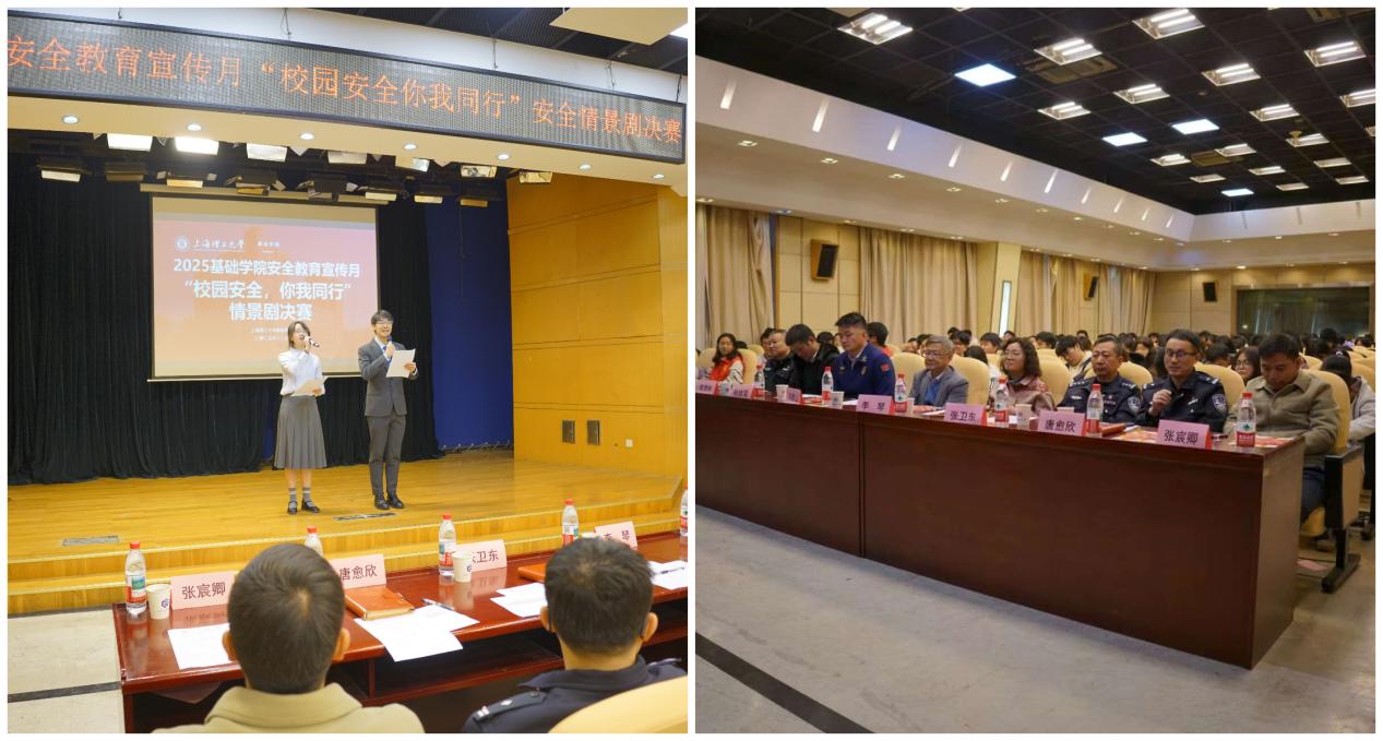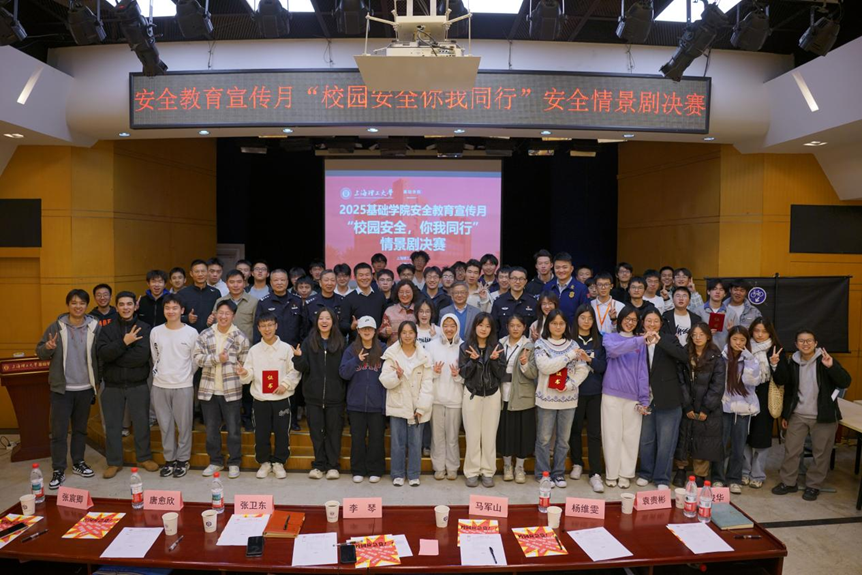 为进一步增强学生安全意识、筑牢校园安全防线,基础学院举办“校园安全,你我同行”安全情景剧决赛。长白新村派出所三级高级警长张卫东,杨浦区消防救援支队新闻宣传科科长杨维雯,杨浦分局交通警察支队车辆管理与宣传大队队长唐愈欣、警官刘俊华,上海理工大学基础学院党委书记李琴,基础学院院长、党委副书记马军山,基础学院党委副书记、副院长袁贵彬,校保卫处治安与技术防范科张宸卿老师应邀出席决赛并担任评委,基础学院200余名新生代表到场观摩比赛。