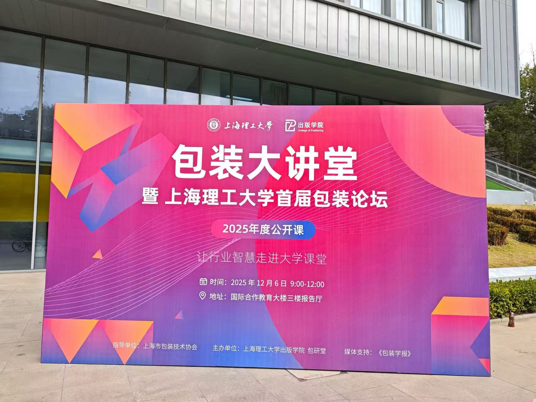 2025年12月6日,由上海理工大学出版学院与上海包研堂科技有限公司联合主办的“包装大讲堂2025年度公开课”暨“上海理工大学首届包装论坛”在该校军工路校区顺利举行。活动汇聚了来自美妆、医药、食品、运输包装、印刷出版等领域的头部企业专家及资深从业者,其中多位为上海理工大学包装专业优秀校友。