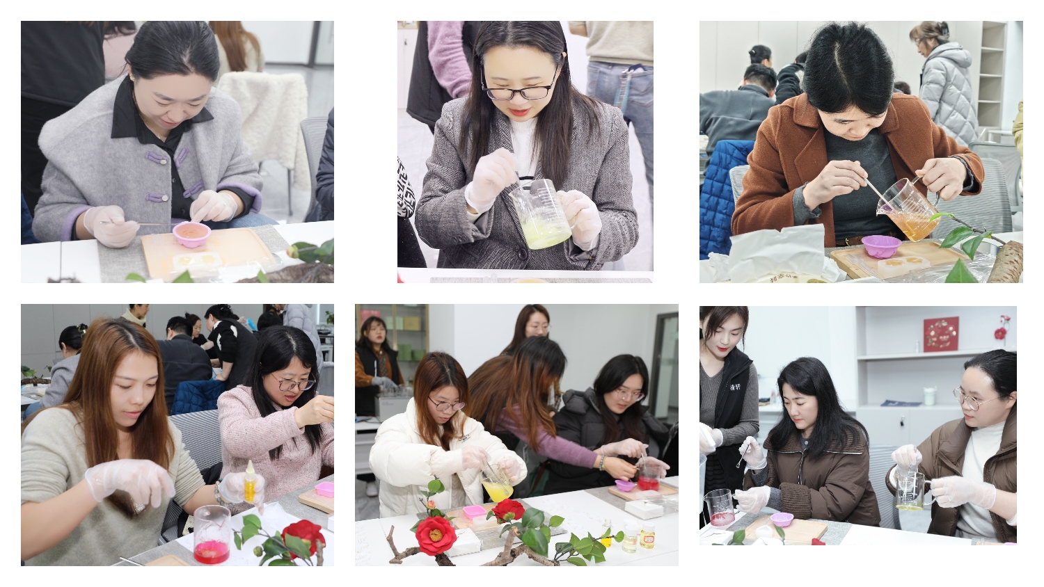 活动在温馨的山茶花手工皂DIY体验中开启。在专业老师指导下,大家亲手调制、注模,将春天的气息封存于一块块精致的手工皂中。大家在指尖的劳作中释放压力,享受了一段静谧而治愈的时光。