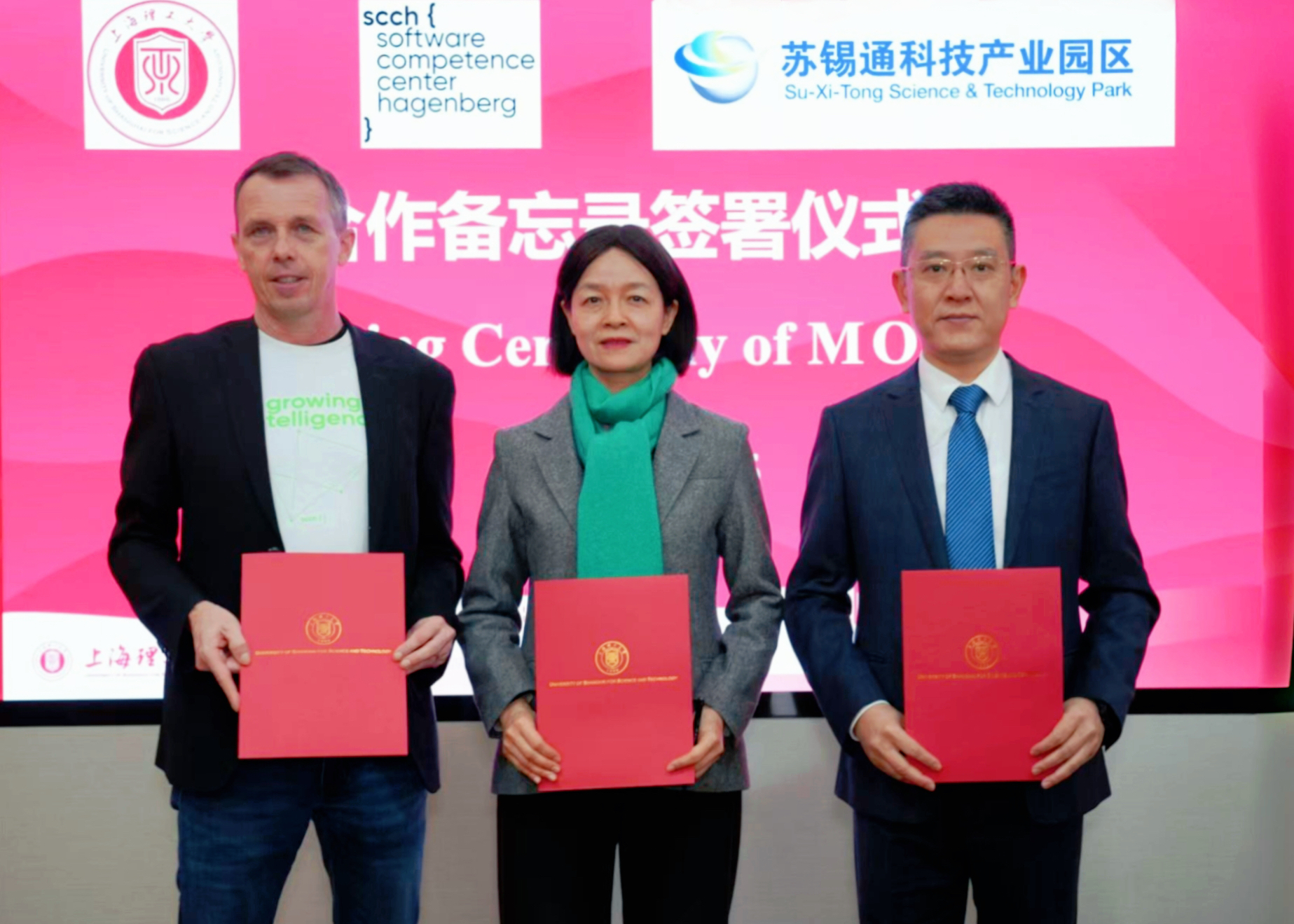 会上,三方正式签署了合作备忘录,并就未来合作方向和重点领域进行了交流与展望。会后,奥地利哈根贝格软件能力中心及苏锡通科技产业园区一行参观了我校中德国际学院实验室,实地了解了我校的教学科研环境与成果。