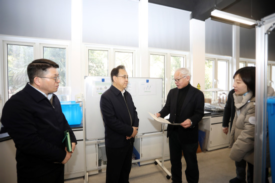 李明斌一行参观超灵敏光谱实验室、光化学与光材料研究院实验室、刘湛恩烈士故居红色文化主题馆等。