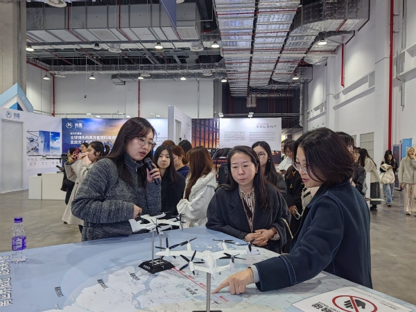在长三角低空经济展贸中心,师生们学习了解电动垂直起降飞行器等新质生产力和无人机物流、空中游览、应急救援等新兴产业形态。这一新兴领域对专业文档翻译、国际技术标准交流、涉外项目管理等提出了新需求,拓展了外语专业学生在高科技与服务贸易融合领域的职业想象空间。