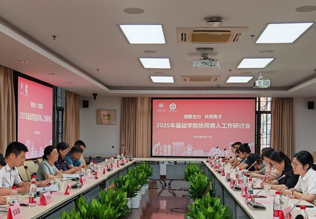 2025 年 9 月 11 日上午,"凝聚合力 共育英才" 跨学院协同育人工作研讨会在基础学院格致堂 108 会议室召开。创新创业学院院长兼公共实验中心主任夏鲲、能源材料科学研究院副院长马晓婷,基础学院领导班子成员、2025 级新生班主任及学院工作人员等 30 余人参加会议。会议由基础学院党委书记李琴主持。