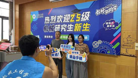 今年营口路校区也迎来了1500余名研究生新生。机械工程学院迎新现场积极打造“家”氛围,用镜头捕捉新生与家长并肩而立的笑脸。每张送至新生与家长手中的照片,都是一份承载着入学喜悦与家庭温暖的珍贵礼物。光电信息与计算机工程学院打造“光影相随,智启新程”迎新活动,激发新生科研兴趣,培养引领未来的光电与计算机领域卓越人才。能源与动力工程学院在迎新现场设置“导师面对面”特色交流区,多位研究生导师亲临报到现场,与2025级新生进行面对面、零距离的深度交流,耐心解答同学们关于研究方向、课程选择、科研规划等方面的疑问,为新生的科研之路奠定了坚实的第一块基石。环境与建筑学院在研究生迎新中融入劳动教育品牌活动——“低碳生活开启环保与幸福同行的大学之旅”碳普惠公益宣传志愿服务行,旨在通过专业教育与低碳实践相结合,为“双碳”目标培养具有生态文明素养的新时代环境人才。