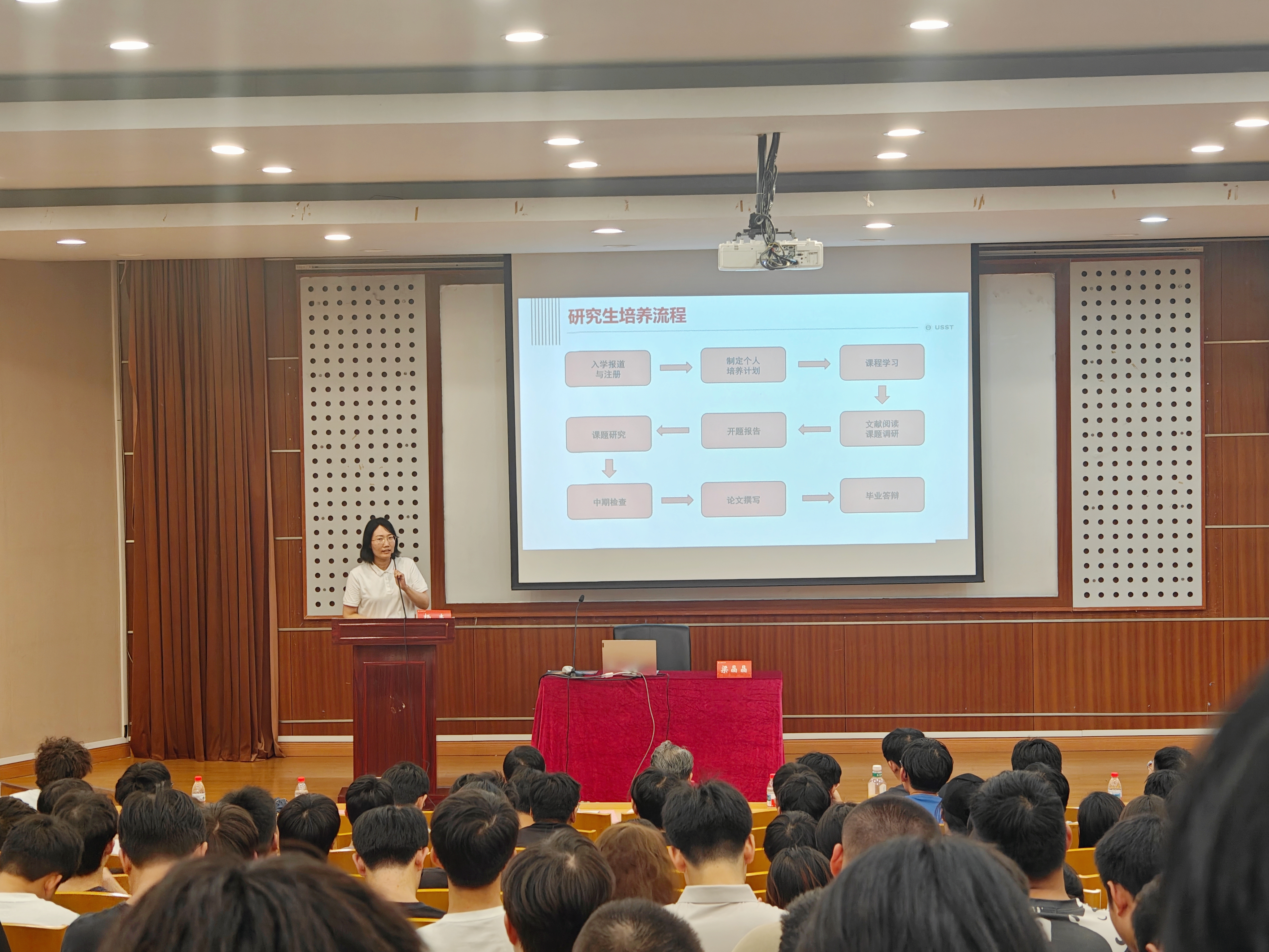 导师代表张万福教授向新生们展示了自己的科研团队在“一核多循环”理念下,拔尖研究生培养的创新实践,介绍了在密封技术、风能利用、减振降噪等科研方面的进展和成果。他在谈到作为导师对研究生培养的体会时,希望同学先做人再做事,提高创新、协同、批判思维等核心素养,勇于尝试,在学术领域创先争优。研究生教务秘书梁晶晶老师介绍了研究生培养过程的重要事项,提醒同学们尽快适应研究生学术生涯。