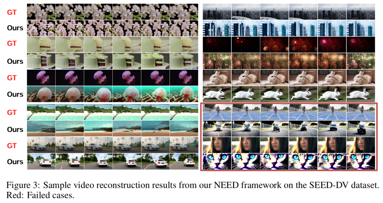提出的NEED框架进行的视频重建示例结果