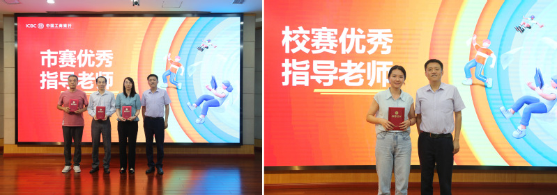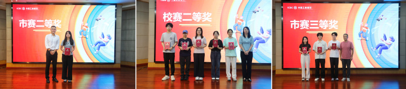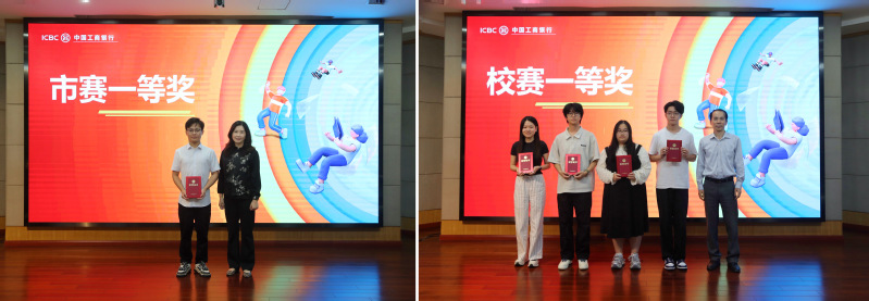 在第15届“工行杯”金融科技创新大赛颁奖环节中,房志明、梅竹影等领导、老师分别为获得市赛和校赛的特等奖、一等奖、二等奖、三等奖的选手颁发获奖证书和奖品。顾贝伶为市赛及校赛优秀指导老师颁发证书。