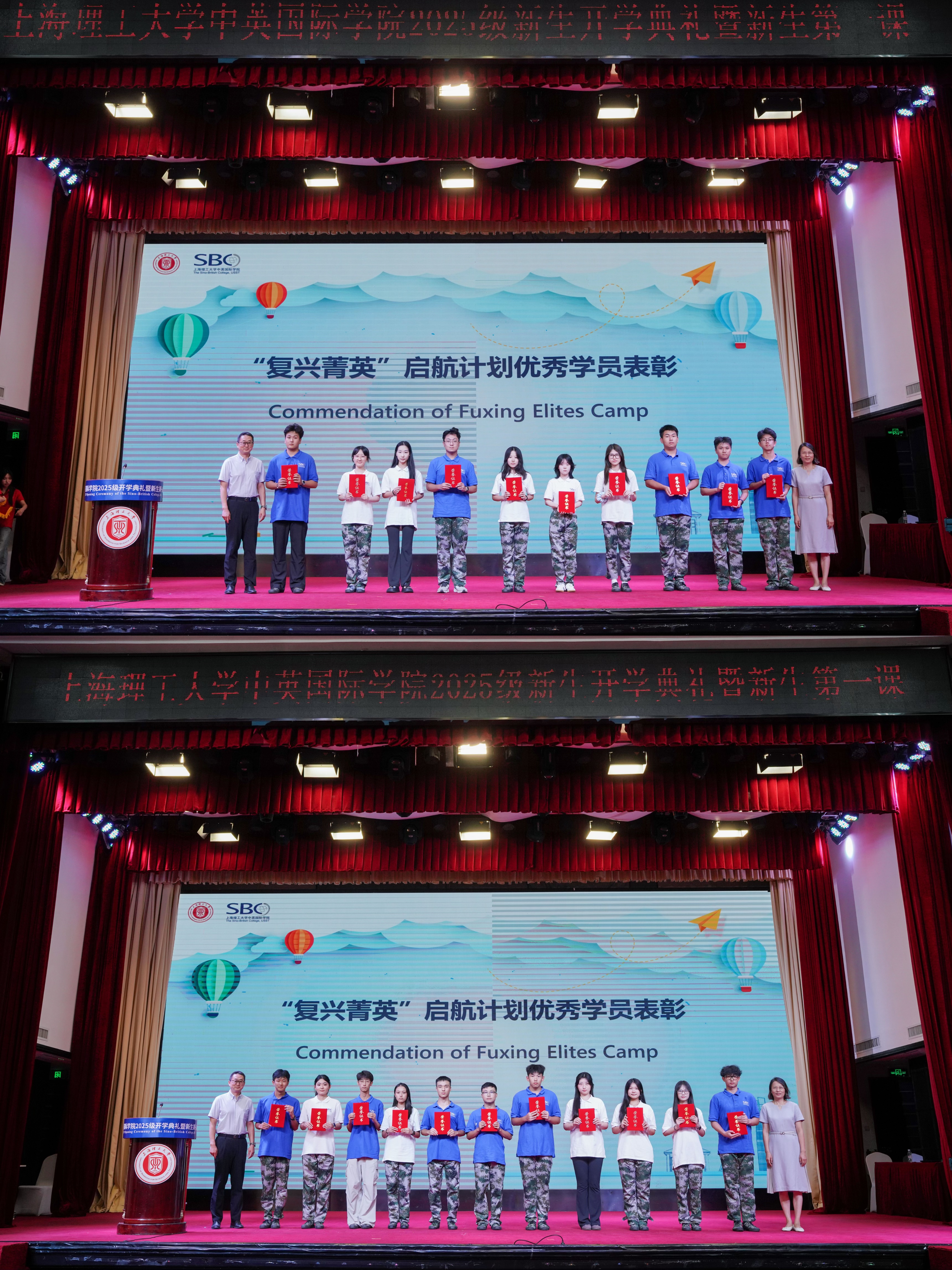 典礼在为期两周的新生“复兴菁英”启航计划回顾短片中拉开帷幕。作为学院新生适应性教育的特色品牌活动,启航计划旨在将入学认知教育有机的融入军训日程之中,通过开展体能训练、专业体验课、趣味运动会等一系列特色活动,引导学生迅速融入国际化校园的同时,选拔一批表现优异的学员。随后,李妍与张峥为“复兴菁英”启航计划优秀学员颁发荣誉证书,对他们取得的成绩表示祝贺,并鼓励大家以此为起点,在未来逐梦的路上继续绽放光彩。