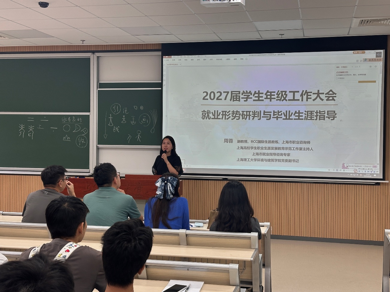为引导学生精准把握学业航向,科学规划未来发展,9月28日中午,环境与建筑学院召开2023级本科生年级大会。活动围绕学业分析、安全警示、入伍政策与生涯规划等多项主题教育内容展开,为站在学涯生涯选择十字路口的大三学生提供指导与教育。学院党委副书记周蓉、本科生辅导员、班主任、全体2023级学生参会,会议由辅导员王木子主持。