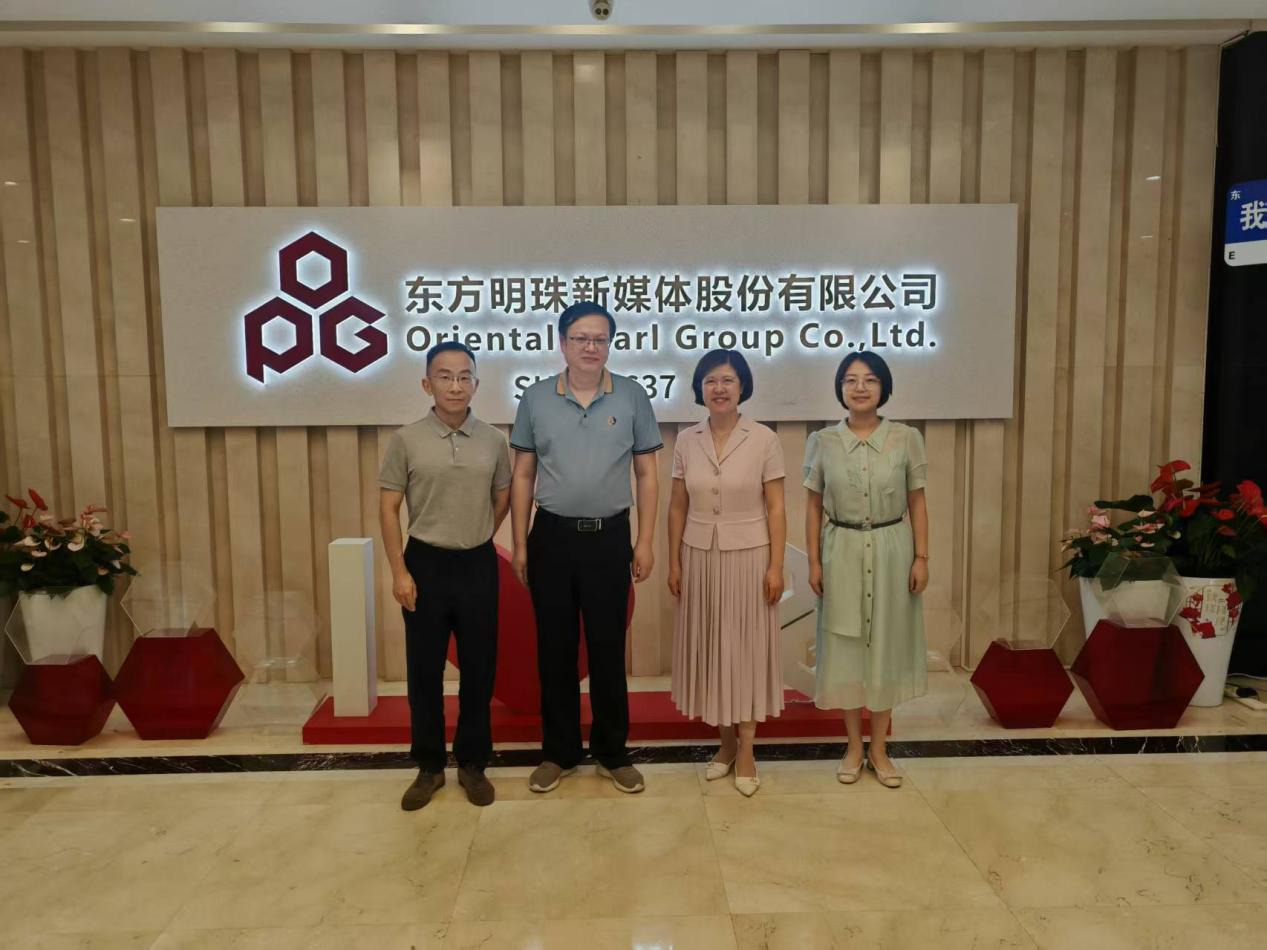 9月28日,上海理工大学外语学院院长刘芹带队走访东方明珠新媒体股份有限公司,看望学院1996级英语(国际新闻)专业校友、东方明珠新媒体股份有限公司党委副书记、董事、高级副总裁黄凯。东方明珠新媒体股份有限公司行政事务中心总经理徐骏热情接待学院来访。