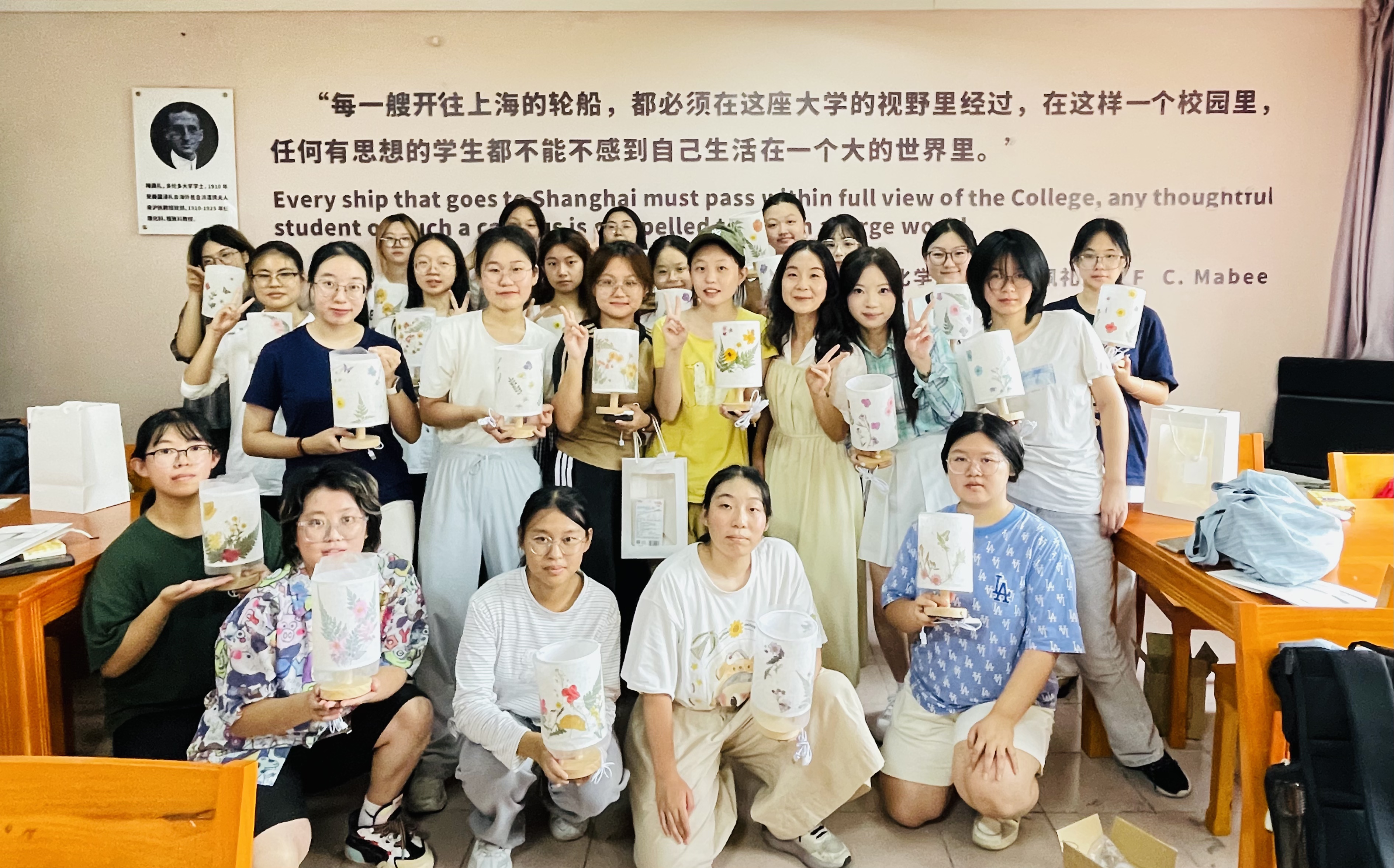 经过一个小时的精心制作,一盏盏独特而充满巧思的压花台灯被相继点亮。柔和的光晕透过花草的脉络,在空间中投射出温暖而雅致的光影,不仅照亮了温馨的宿舍空间,更装点了同学们难忘的双节记忆。同学们表示,在沉浸式的创作体验中也收获了身心的放松与同窗协作的快乐,这份特别的“双节礼物”让远离家乡的求学时光倍添温暖与归属感。
