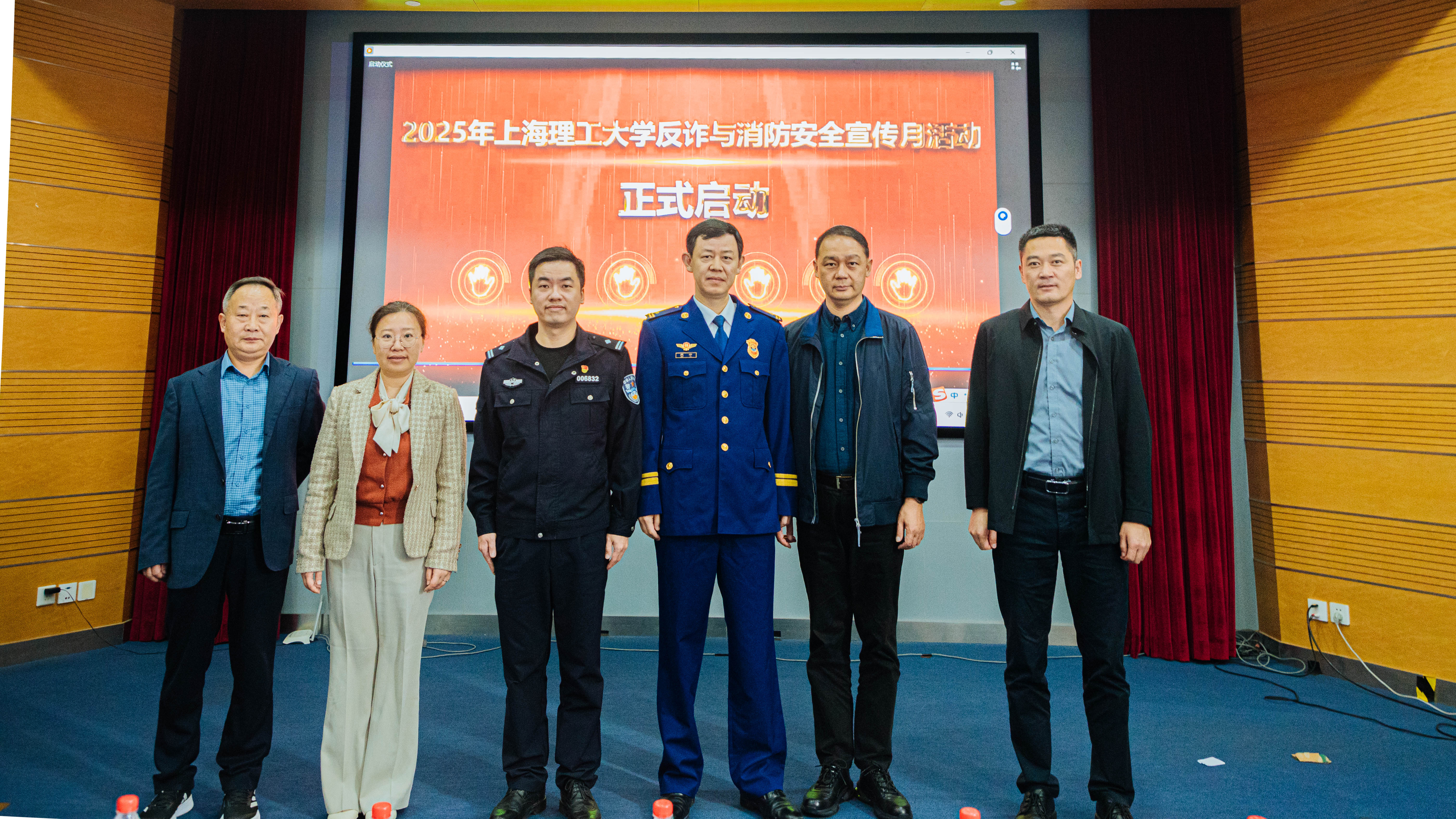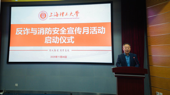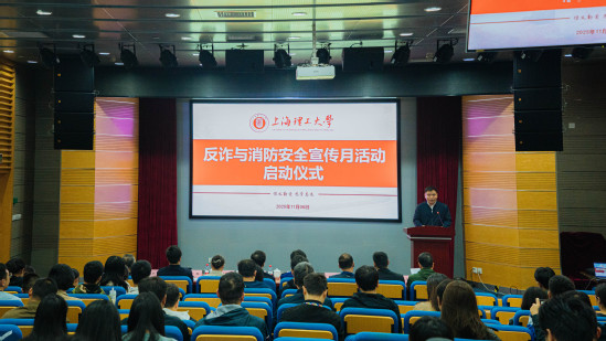 11月6日上午,学校2025年反诈与消防安全宣传月活动启动仪式暨反诈与消防安全专题培训在光电大楼一楼报告厅举行,本次活动是学校贯彻落实上海市教委关于反诈与消防安全工作要求的重要举措。杨浦区消防救援支队、上海市文保分局治安管理支队、沪东高校派出所相关负责人,学校保卫部(处)、学工部、研工部、后勤处等相关负责人出席活动,学校各二级单位治保主任、反诈专员、实验室管理员、辅导员代表、学生代表共100人左右参加活动,校保卫部(处)干部主持活动。