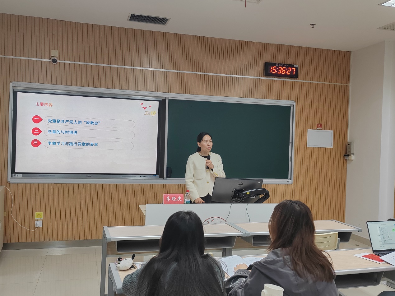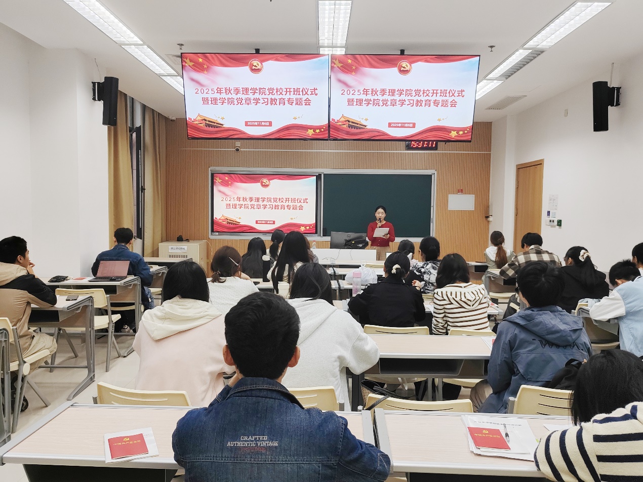 为深入学习贯彻习近平新时代中国特色社会主义思想、党的二十大及二十届四中全会精神,进一步筑牢学院入党积极分子与预备党员的思想根基,强化青年党员的党性修养与使命担当,引导其深刻理解党章的核心要义与实践要求,11月6日,理学院2025年秋季党校培训班第一讲正式拉开帷幕。本次培训由学院党建辅导员龚丹主持,学院党委副书记李晓庆作开班专题授课,全体秋季学期入党积极分子及预备党员参加学习。