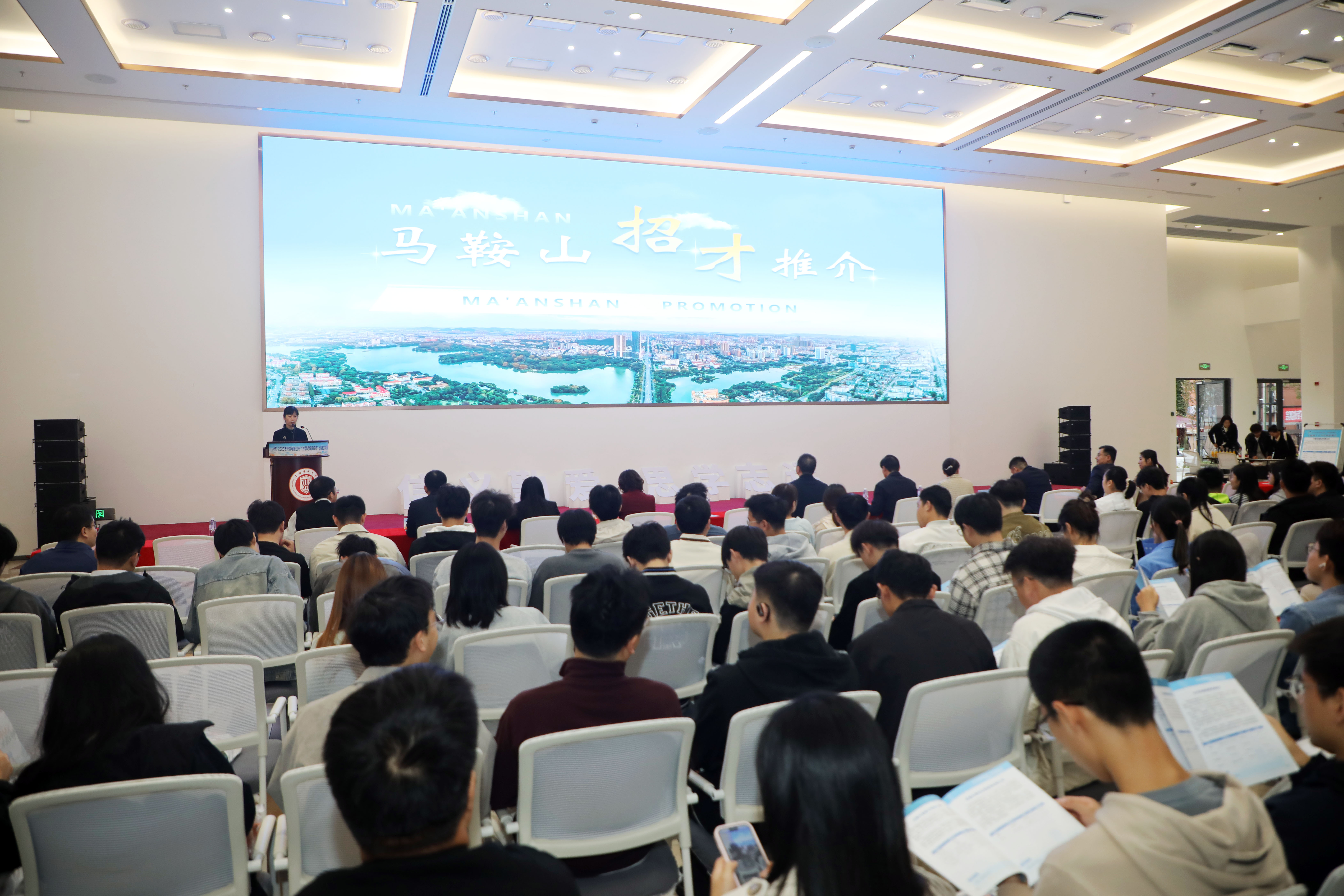 在马鞍山市招才引智推介会上,左年文从历史底蕴、区位优势、产业基础、发展潜力和人才政策等多个维度介绍了马鞍山市的发展图景,详细解读了马鞍山市积极建设“青年未来城”,实施“青年乐业”“青年安居”“青年悦享”“青年无忧”等四大行动,包括就业创业环境、求职驿站、安家补贴等一揽子政策,向在座学子发出了“结缘马鞍山、建功马鞍山”的盛情邀请。推介会结束后,来自马鞍山市的十八家重点企事业单位组成了“引才招聘团”,提供了覆盖智能制造、新材料、电子信息等多个领域的近300个优质岗位。双选会现场气氛热烈,约300名毕业生在各个招聘展位前仔细咨询、踊跃自荐,与企业招聘负责人进行了深入而高效的交流。