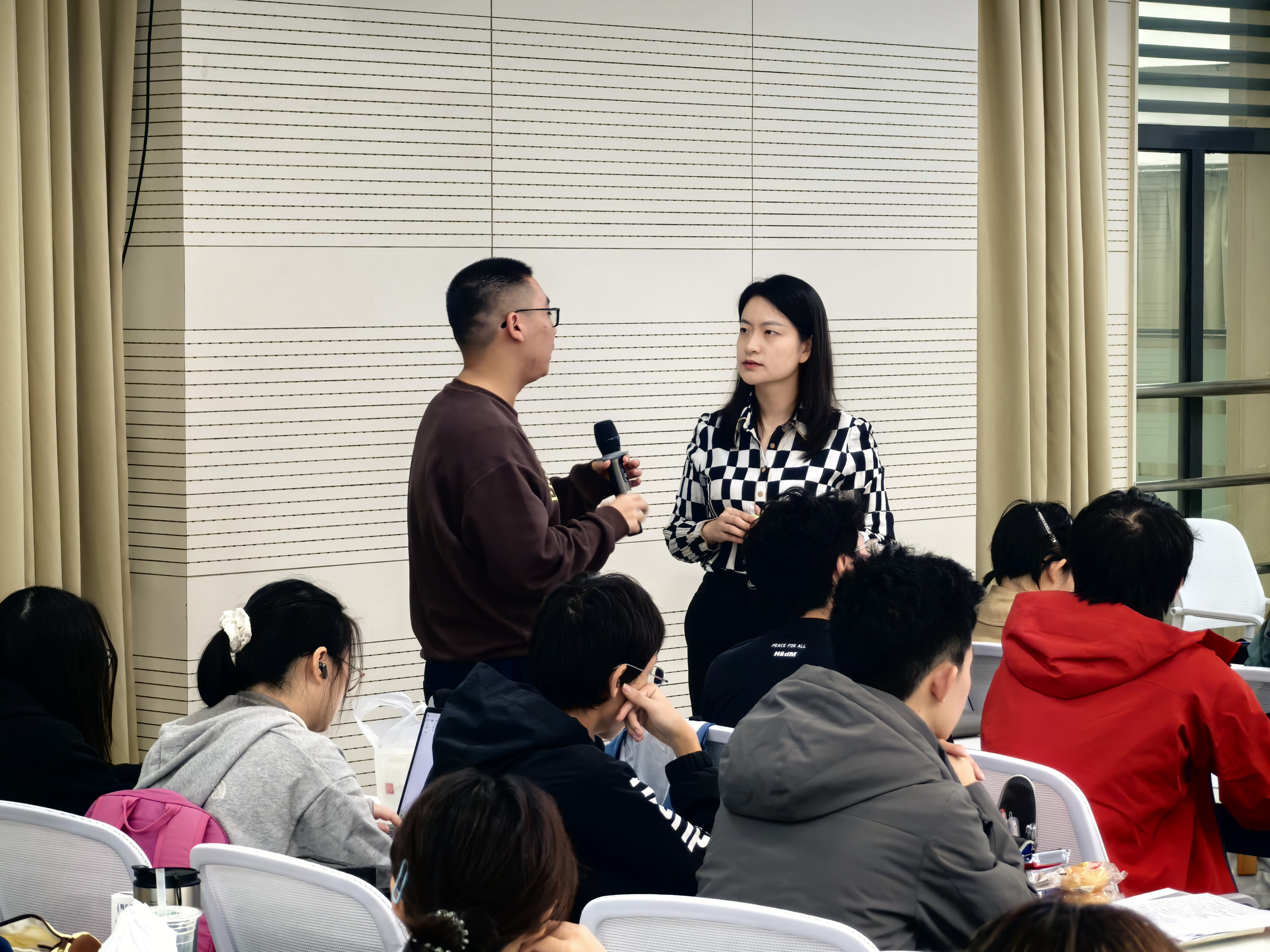 徐欧老师围绕“认识自我·从容启程”主题,系统开展四模块指导。首讲MBTI性格解析,强调非标签化,聚焦性格与职业环境、团队模式的适配逻辑;次析职场竞争力,提出“硬技能(技术能力)+软素质(学习力、协作力)”双轮策略,建议通过项目实践积累“能力证据”;针对求职压力,传授目标拆解、社会支持系统构建等工具,助学生转化焦虑为成长动能;末以“职场新人进阶”收尾,详解职业竞争力内涵,覆盖学生思维到结果导向、沟通边界感、团队破冰术等实操要点,为从校园到职场的关键跨越提供全链条指引。