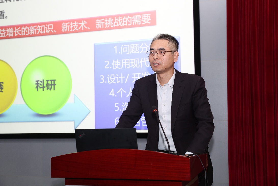佟国香为学员们介绍了大学生嵌入式芯片与系统设计竞赛的相关内容,分析了不同赛道的特点,并展示了学校历年参赛成果,鼓励同学们以赛促学,提升创新实践能力。