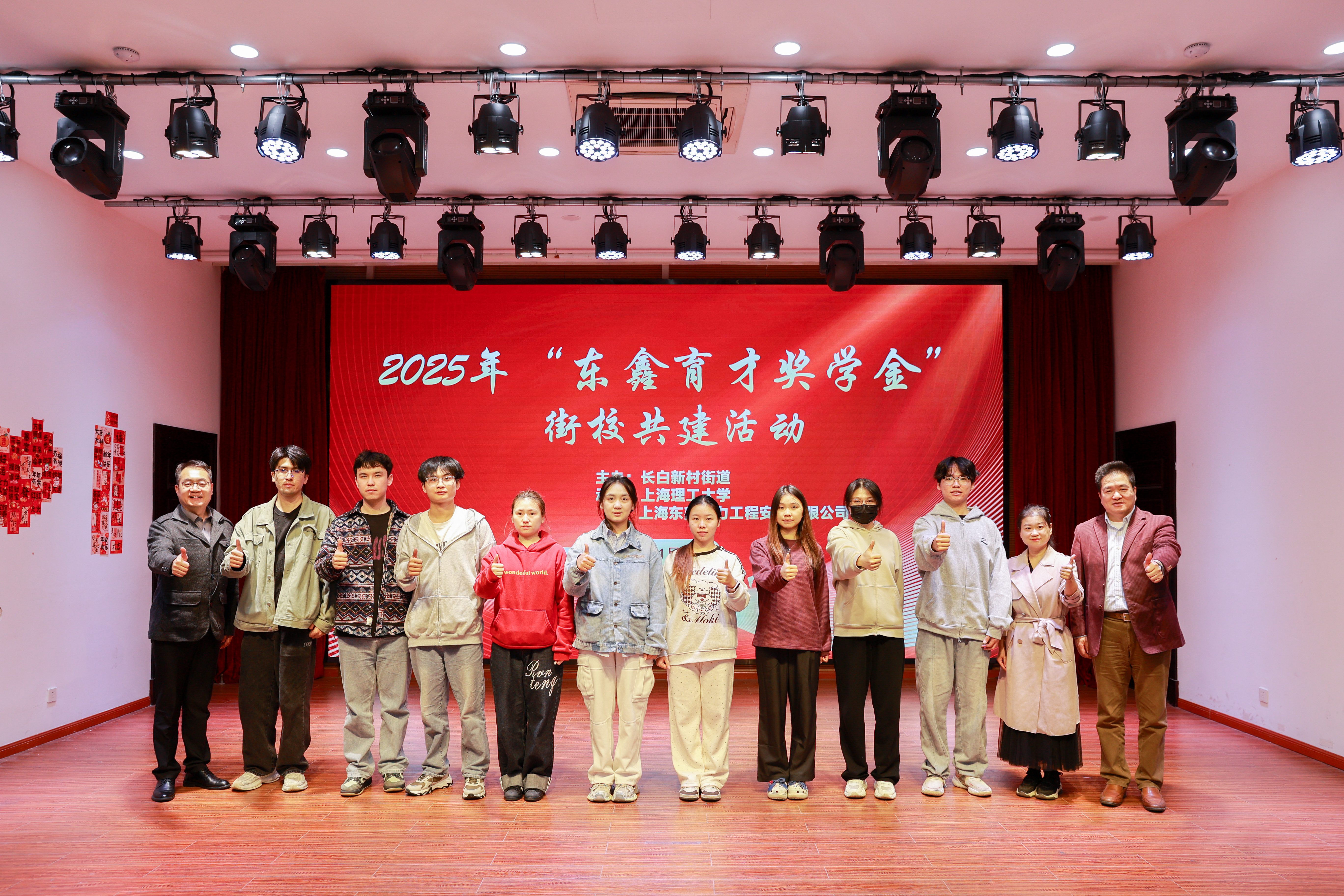 11月12日下午,2025年度“东鑫育才奖学金”街企校共建活动在上理工举行。长白新村街道三级调研员胡仁勤、上海东鑫电力工程安装有限公司工会主席奚晨婕、学校党委统战部副部长樊小军出席活动。10名品学兼优的少数民族学生荣获2025年“东鑫育才奖学金”。