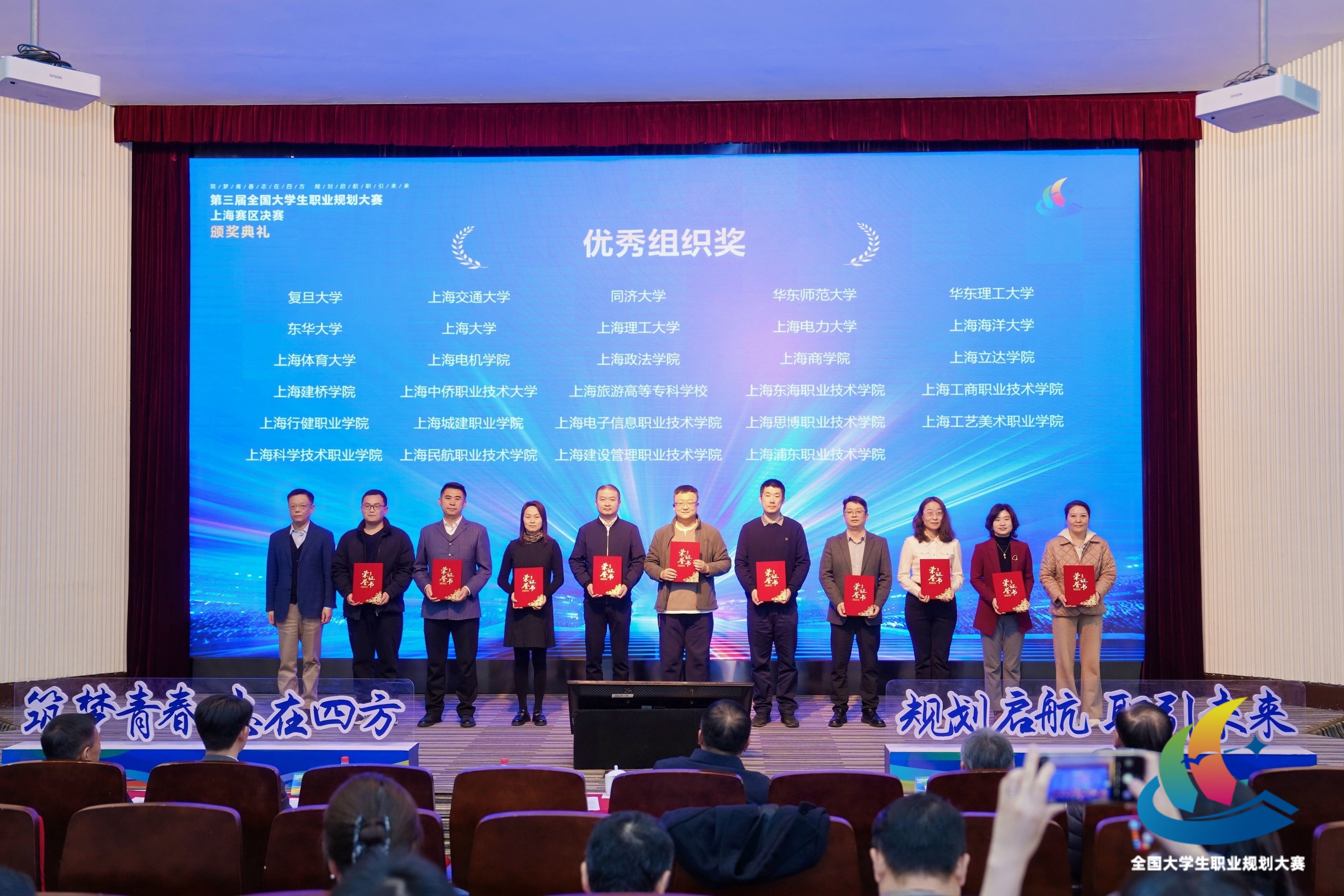 12月28日,第三届大学生职业规划大赛上海赛区总决赛结果揭晓,我校师生凭借突出的综合素养、清晰的职业规划、扎实的专业能力与富有感染力的表现,在比赛中创佳绩,共夺得金奖1项、银奖4项、铜奖2项,呈现了我校在推动生涯教育体系建设、学生职业发展指导与高质量就业方面的成效。大赛以“筑梦青春志在四方,规划启航职引未来”为主题,旨在打造强化生涯教育的大课堂、促进人才供需对接的大平台、服务毕业生就业的大市场。