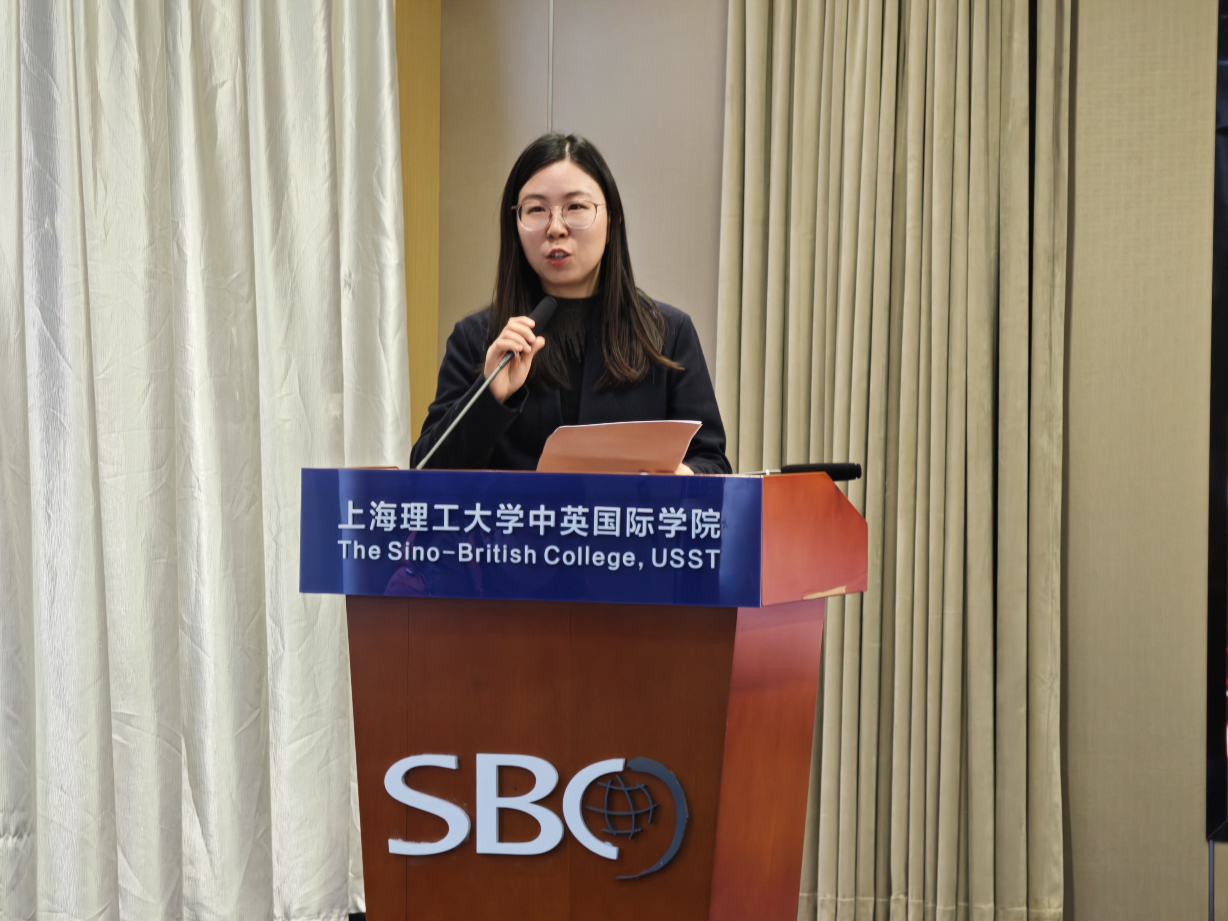 12月26日下午,上海理工大学中英国际学院首届教职工表彰大会举行。中英国际学院党委书记李妍,党委副书记、副院长(主持行政工作)、代理执行院长张峥,学院党委副书记、副院长蔡卉出席会议,与全体教职工齐聚一堂,共同回顾学院2025年度发展硕果,表彰激励先进典型,并以丰富多彩的文艺表演共迎新年,携手展望未来。会议由蔡卉主持。