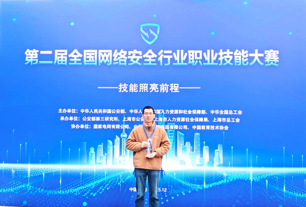 12月31日,由中华人民共和国公安部、中华人民共和国人力资源和社会保障部、中华全国总工会主办,公安部第三研究所、上海市公安局、上海市人力资源和社会保障局和上海市总工会承办的第二届全国网络安全行业职业技能大赛在上海举办,我校公共实验中心下属计算中心王山山老师夺得渗透测试员赛道全国三等奖荣誉。