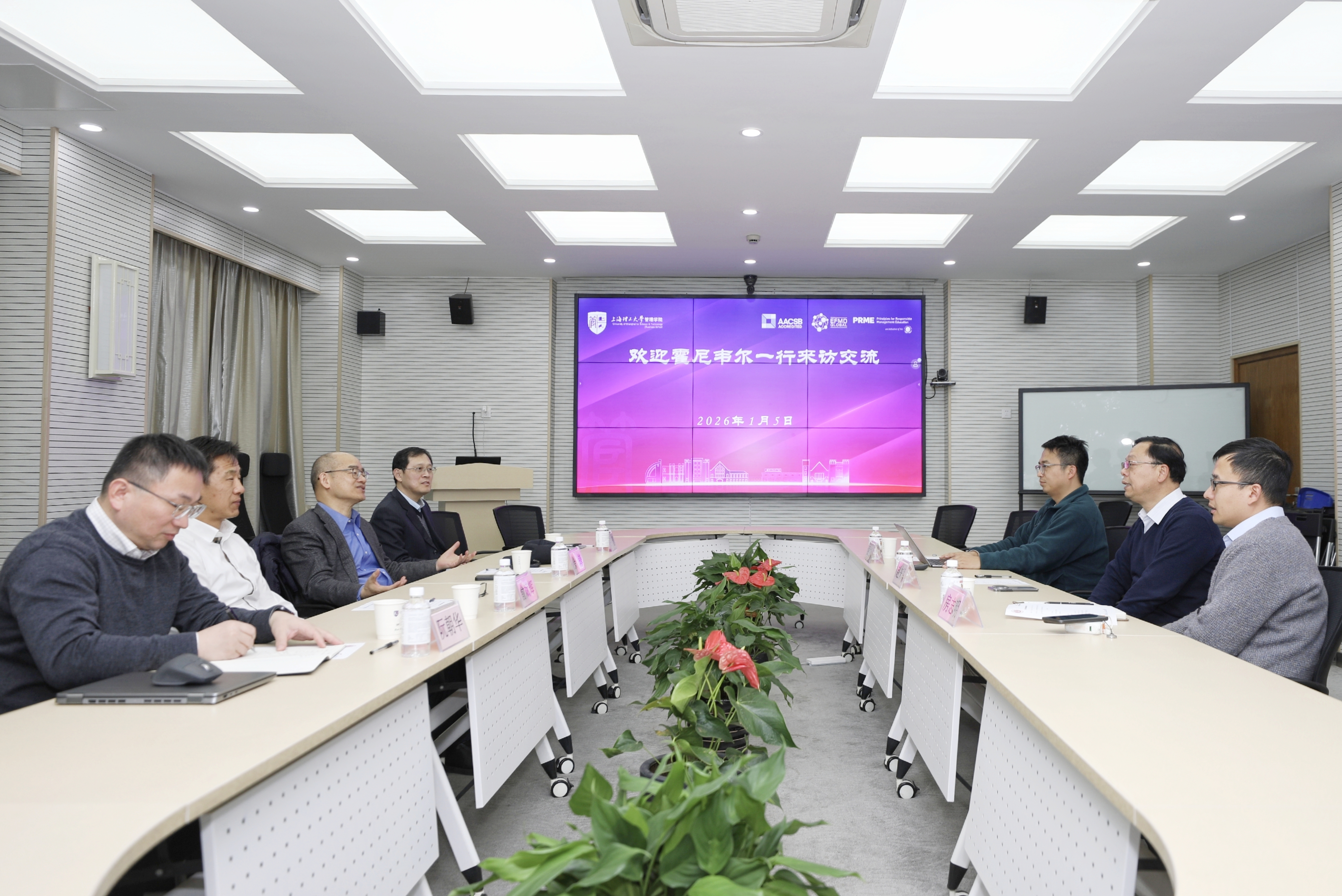 1月5日下午,霍尼韦尔大中华区总裁余锋、中国HSE总监俞斌辉、中国项目自动化业务负责人王晋、高级产品经理阮朝华一行来上海理工大学交流访问。管理学院院长、智慧应急管理学院执行院长赵来军教授,管理学院副院长、智慧应急管理学院秘书长房志明教授,智慧应急管理学院学术秘书周立欣副研究员等出席座谈会。