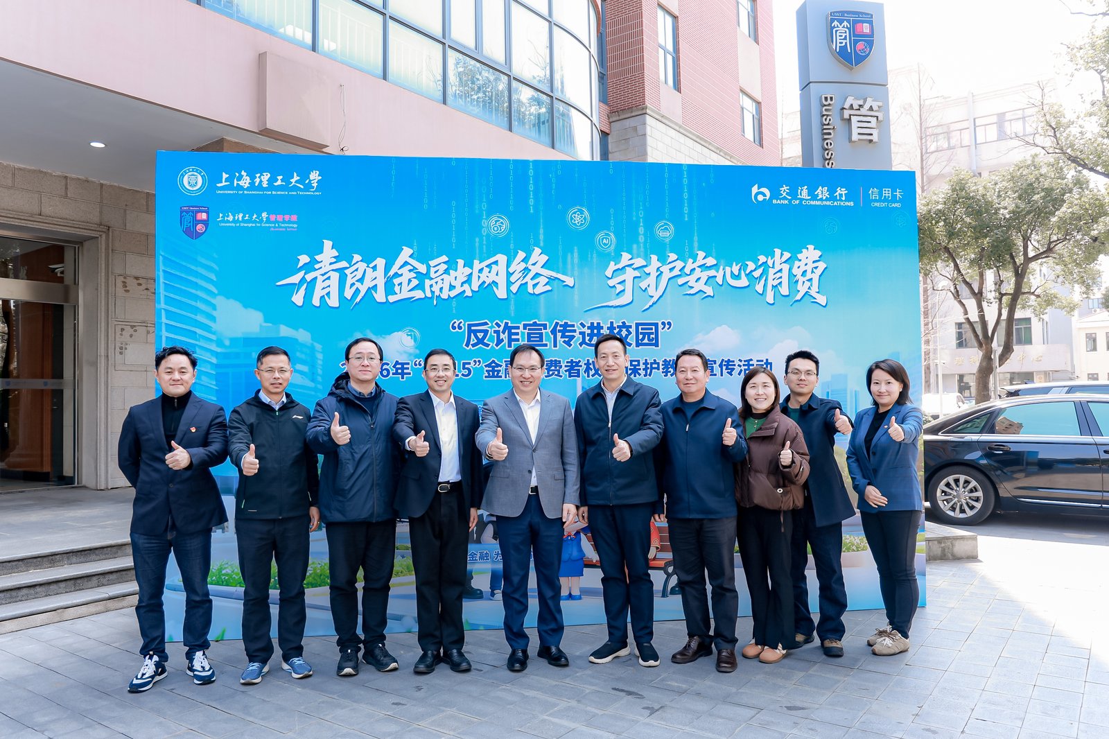 3月11日上午,“清朗金融网络 守护安心消费”——大学生反诈宣传进校园活动在学校管理学院4楼报告厅举行。交通银行副行长周万阜,学校党委副书记、副校长刘德强,交通银行信用卡中心党委书记贺波出席活动。上海市金融局消保处、上海银行业保险业纠纷调解中心、中国邮政速递物流股份有限公司、市公安局杨浦分局刑侦支队相关负责人以及学校保卫处、财务处、管理学院相关负责人和师生代表参加本次活动。