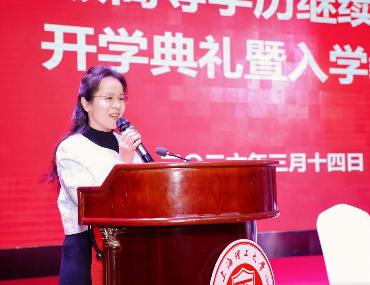 3月14日上午,上海理工大学2026级高等学历继续教育新生开学典礼暨入学教育在学校大礼堂举行。典礼采取线上线下相结合的方式,通过云直播同步进行。时值学校建校120周年,这场典礼不仅是新学期的起点,更是百廿学府薪火相传、终身学习理念蓬勃生发的生动见证。副校长张华出席典礼,教务处副处长张鲁潮,继续教育学院直属党支部书记、院长李建东,教师代表、新生代表、校友代表、各教学点负责人、继续教育学院全体人员等参加仪式,其余师生通过云直播观看。典礼由继续教育学院副院长张爱阳主持。